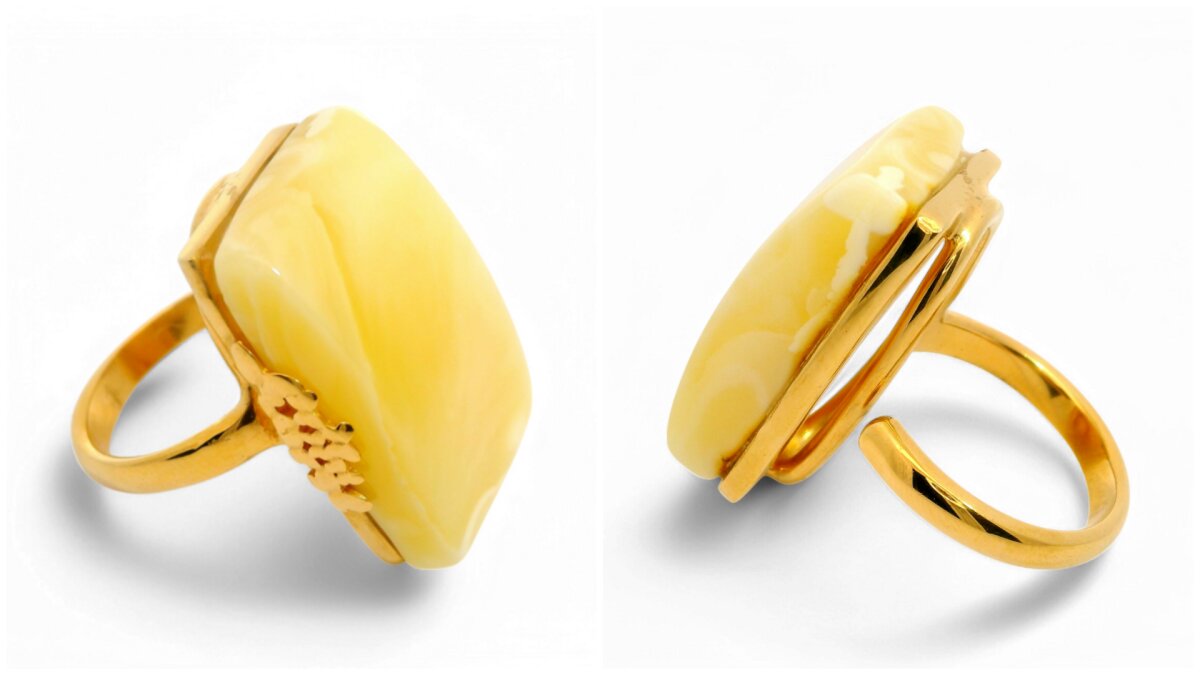 Its warm color palette ranges from golden honey and deep cognac to rare green and even blue shades. A single stone can contain ancient plant fibers, tiny air bubbles, or unique inclusions — making every piece one-of-a-kind.