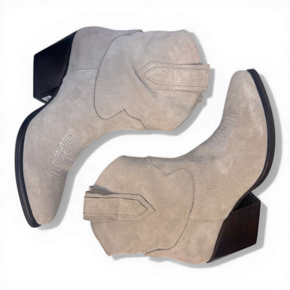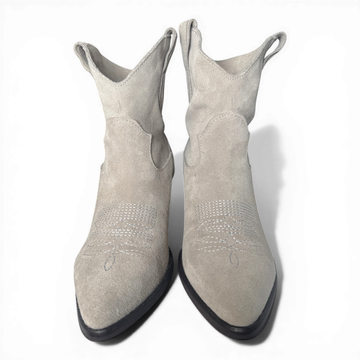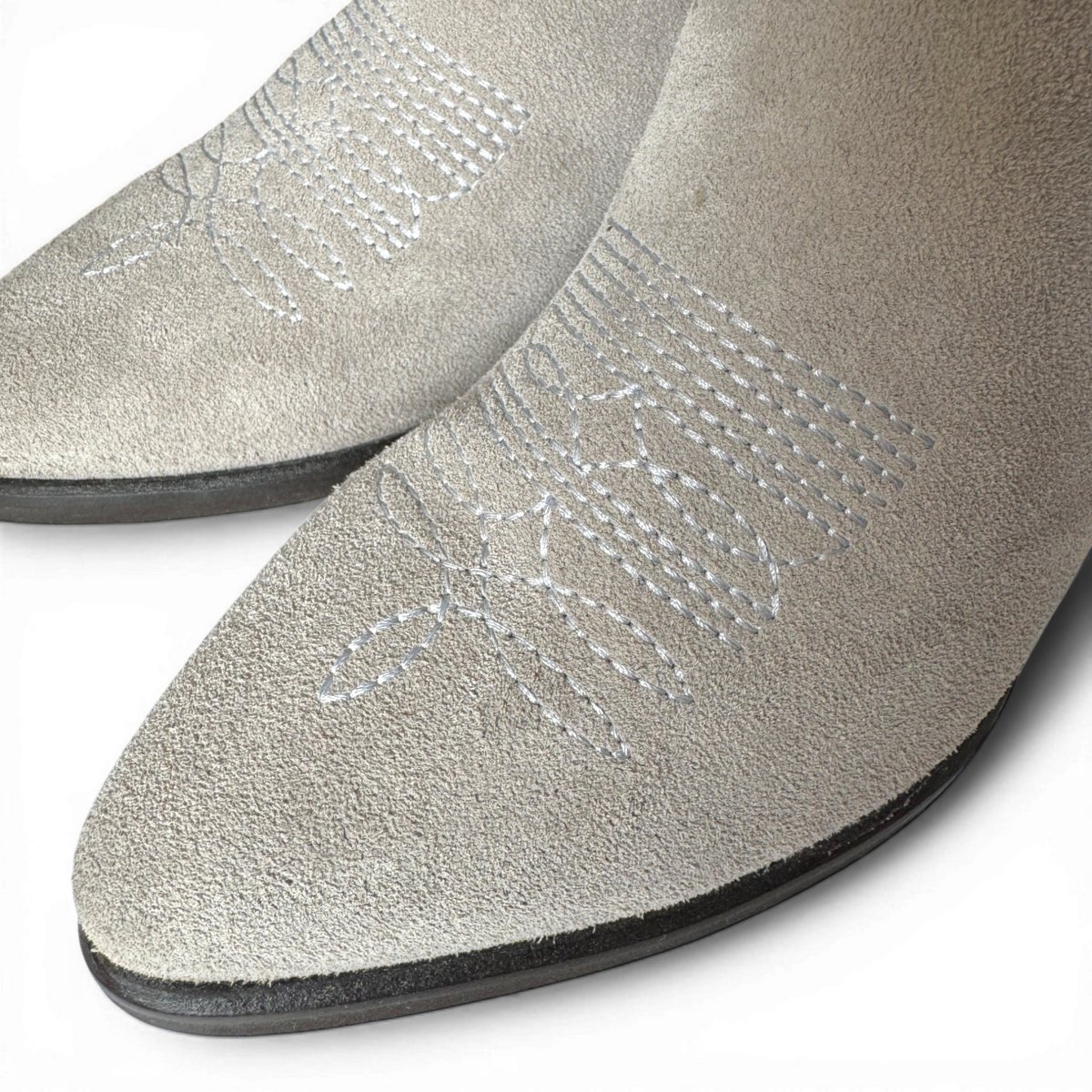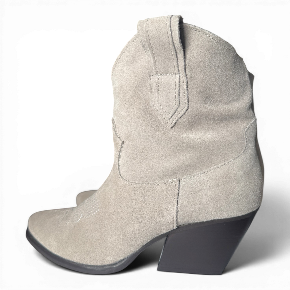 Crafted from premium ghiaccio-gray suede, the Leila boots seamlessly blend classic cowboy aesthetics with a contemporary biker-inspired edge. Featuring a sleek pointed toe, low stacked heel, and Western-style stitching, these boots are designed for both style and functionality. Their versatile neutral hue pairs effortlessly with denim, dresses, or tailored pieces, making them a standout addition to any wardrobe. Durable and timeless, they’re perfect for elevating everyday looks or completing bold, statement outfits.