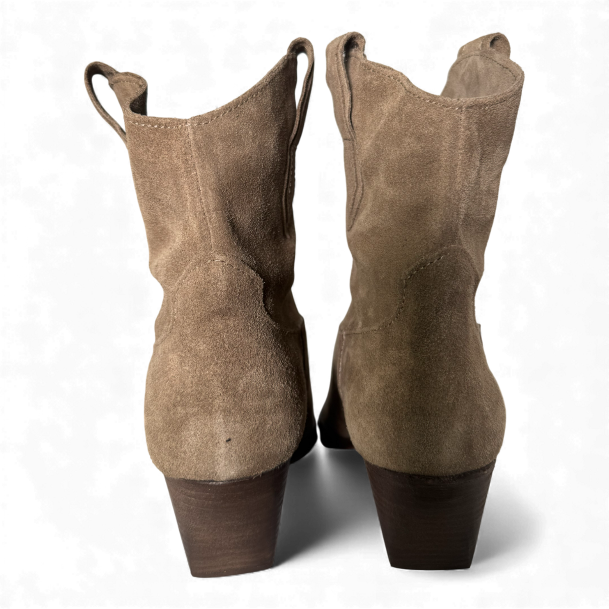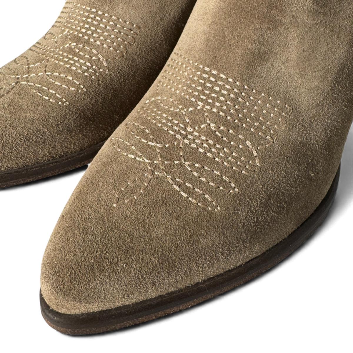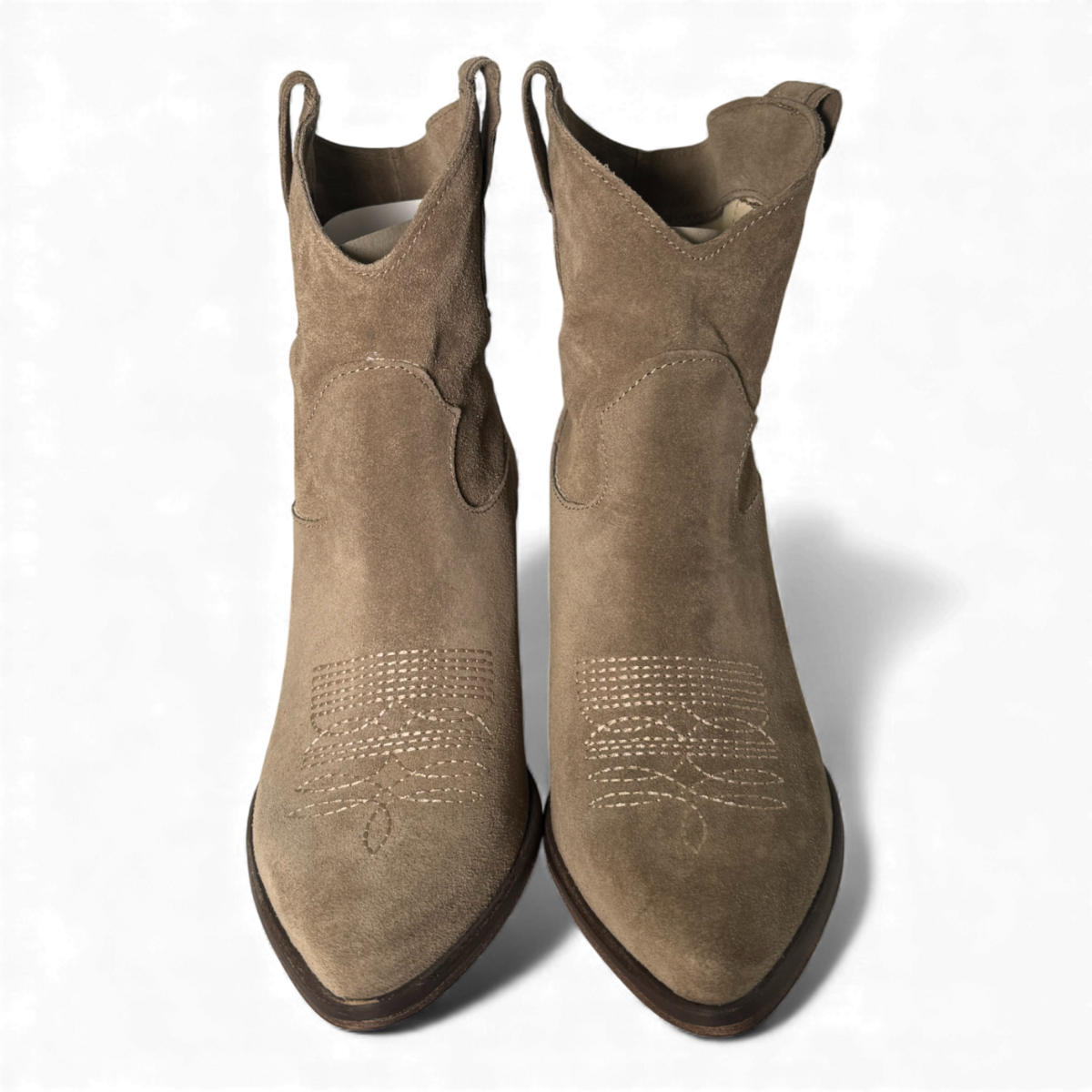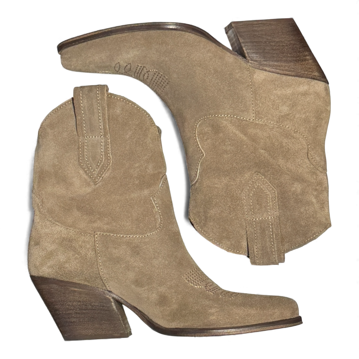 Crafted from soft taupe suede, the Leila boots offer a refined blend of Western charm and modern biker attitude. Their sleek silhouette, tapered toe, and comfortable stacked heel create an effortlessly elevated look. Versatile, understated, and beautifully textured — the perfect neutral boot to complement any stylish wardrobe.
