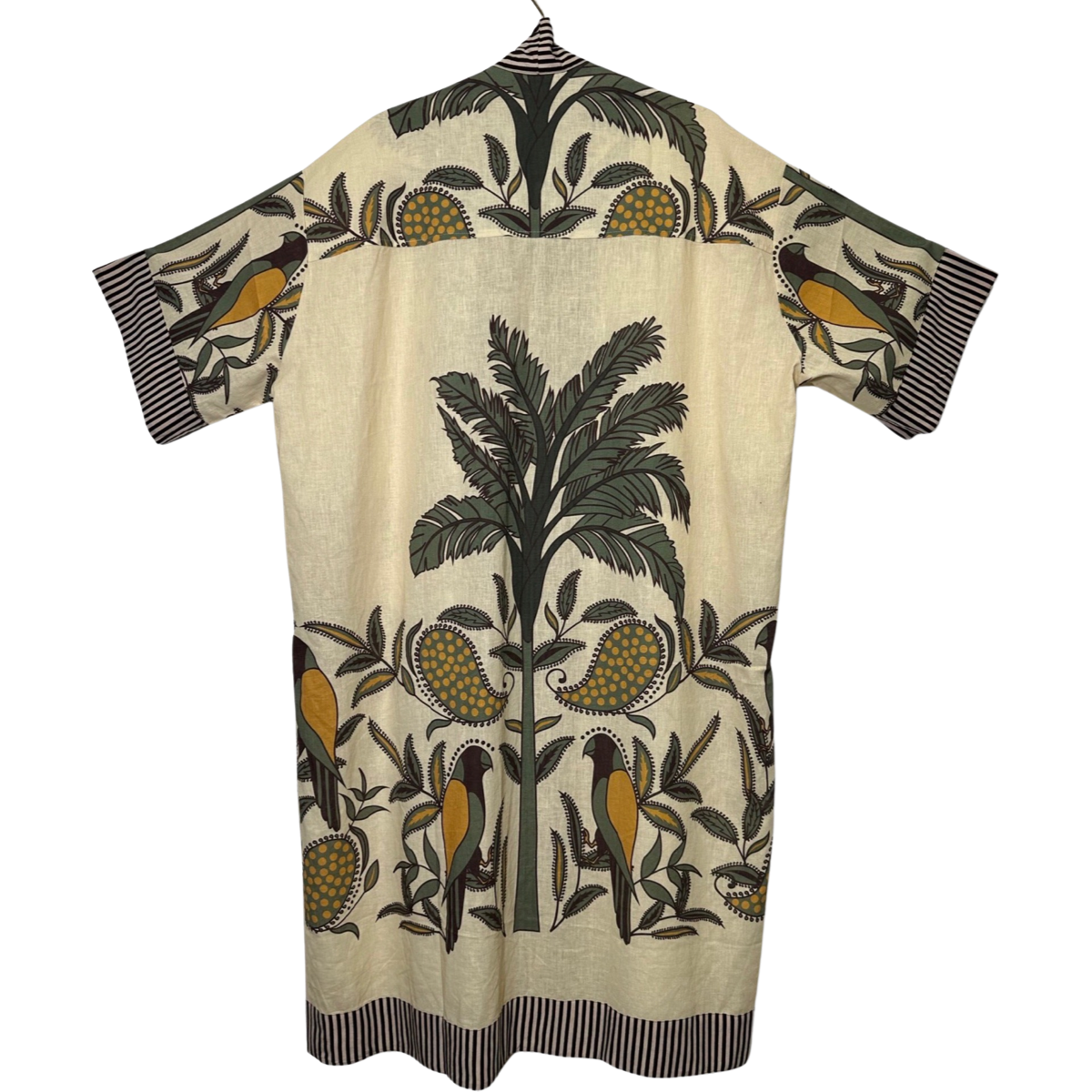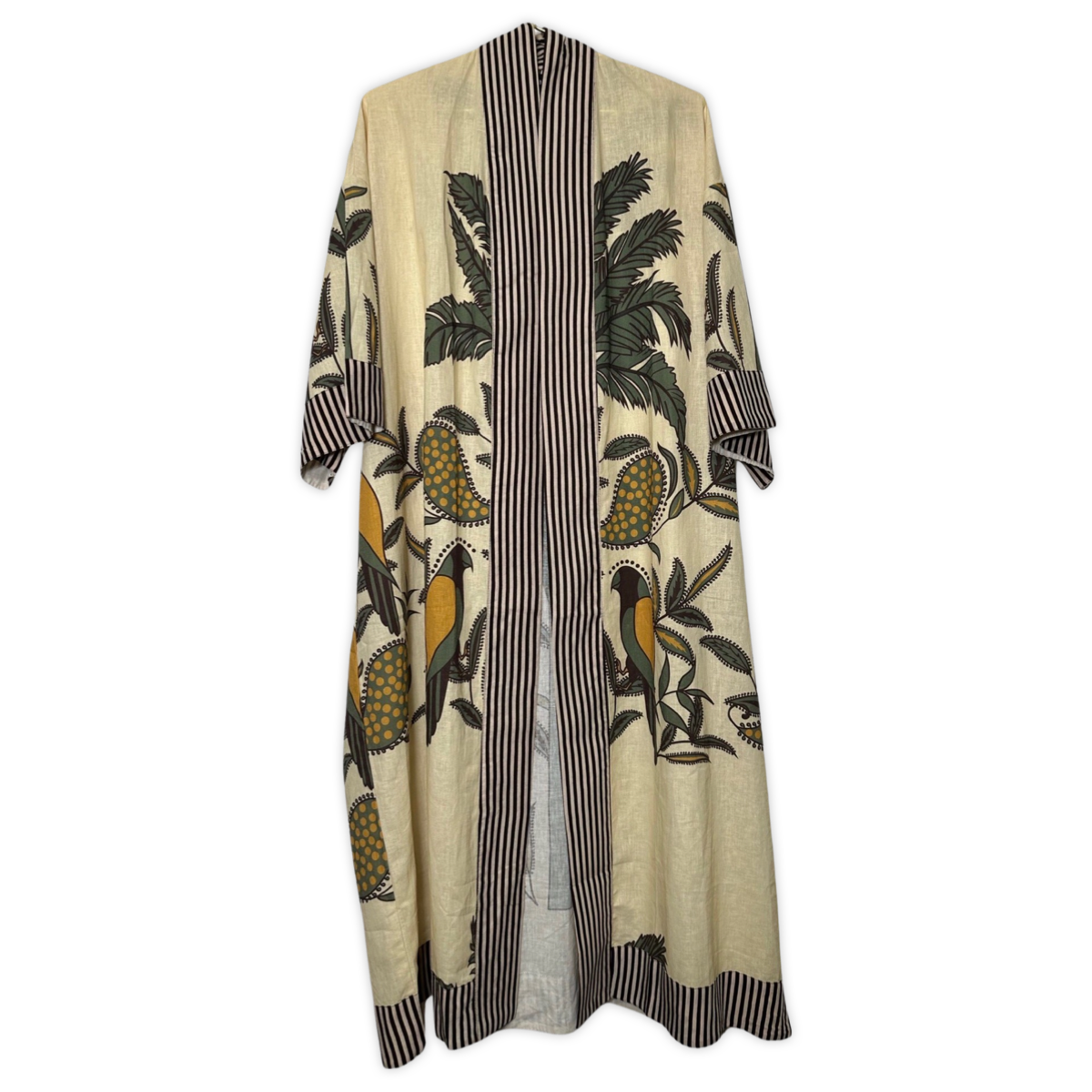 总的来说,这款和服是一件美丽且独特的单品,定能吸引众人目光。其舒适且多功能的设计使其适合任何场合,而精致的鸟类和棕榈叶图案则为任何装扮增添一丝异域魅力。