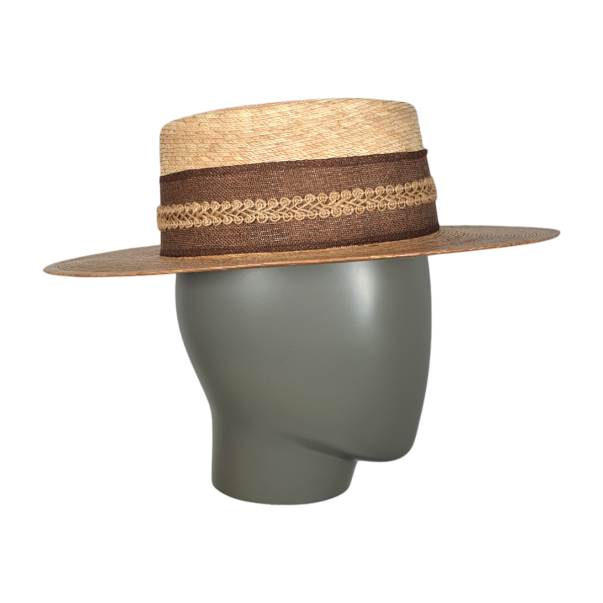 一款永恒经典的草制平顶礼帽,带有结构化的平顶和宽大笔直檐边。轻盈透气,是阳光明媚的日子的完美配饰,既时尚又舒适。