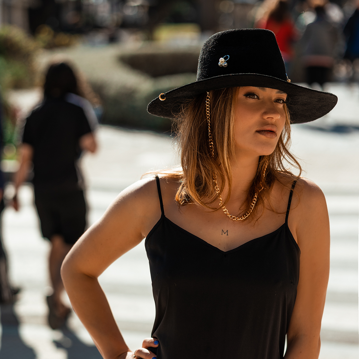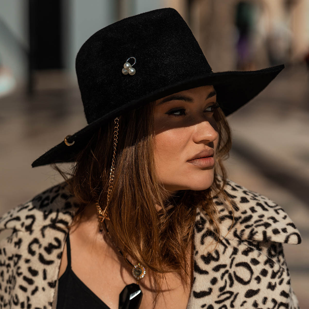 An absolute must have hat that is designed with a chain strap flat brim fedora fashion hat design. Add a touch of elegance to your winter look with this hand-embroidered beanie. Made from high-quality wool, this beanie is soft and warm, making it perfect for cold days. The intricate embroidery on the cuff adds a personal touch to this classic design, making it stand out from other beanies. Available in a variety of colors to match any style. Ruslan Banignskiy Chain Strap Straw Fedora Hat is decorated with gold-tone chain and a cotton trim. Equal parts versatile and trendy, this hat is a key element for the warm season wardrobe.