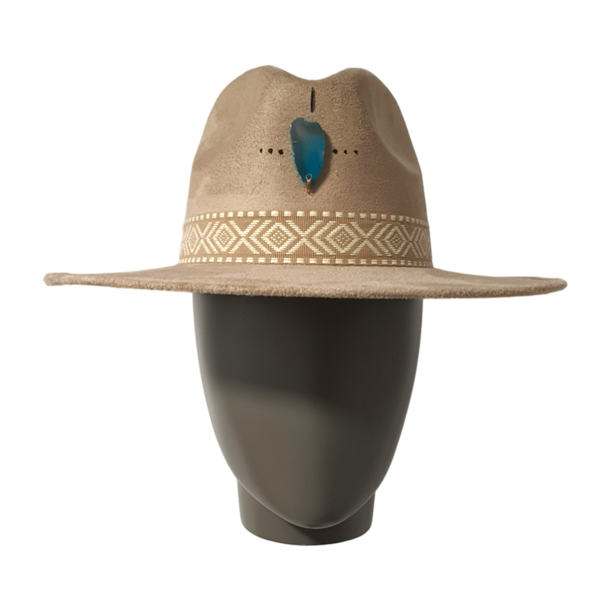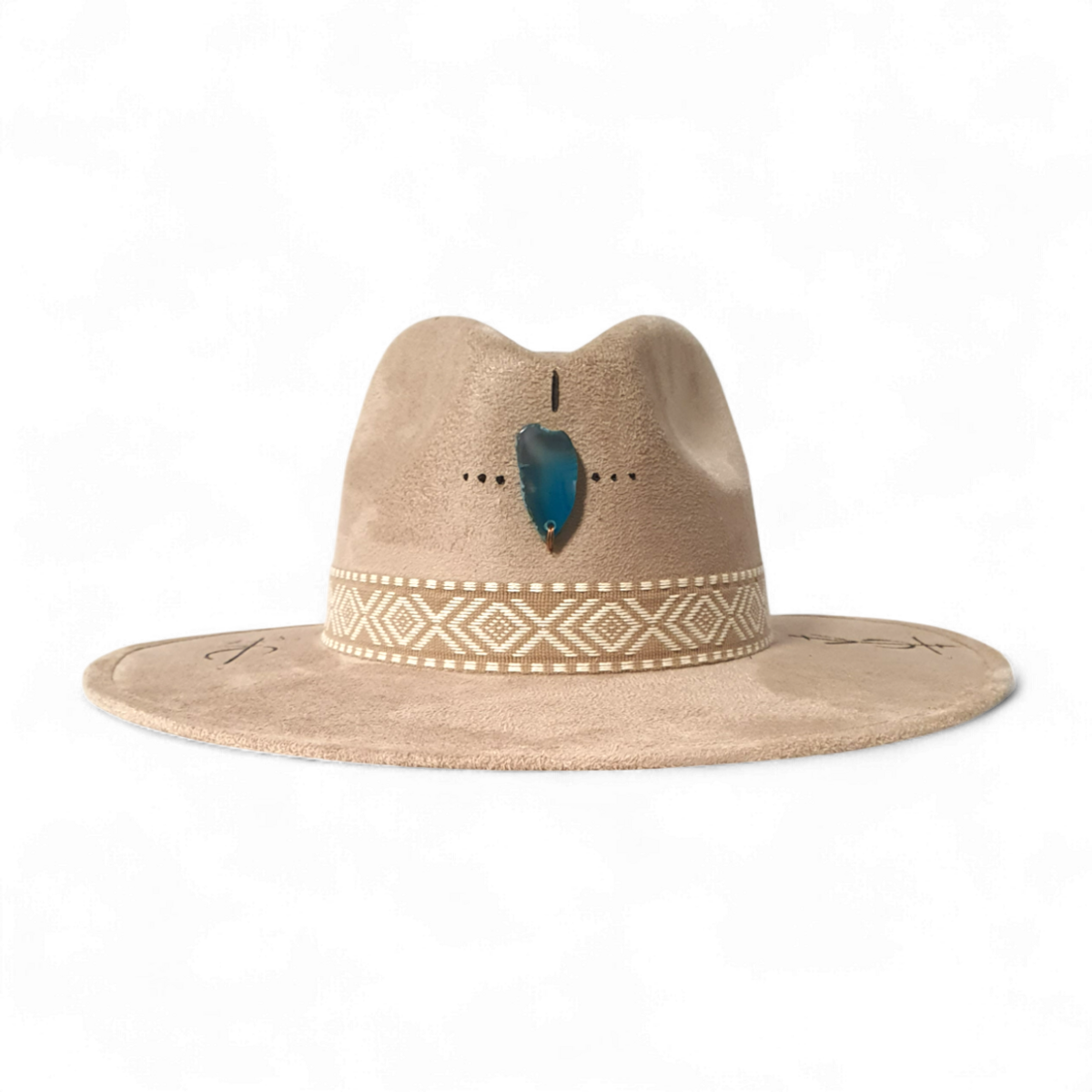 这款现代风格的经典软呢帽,采用柔软的米色绒面织物制成。独特的设计点缀着天然石英石,并配有精细的手绘烧画工艺,使每顶帽子都成为独一无二的个性配饰。手工艺与大胆设计的结合,打造出现代艺术感的轮廓——非常适合欣赏独特且富有表现力风格的人士。