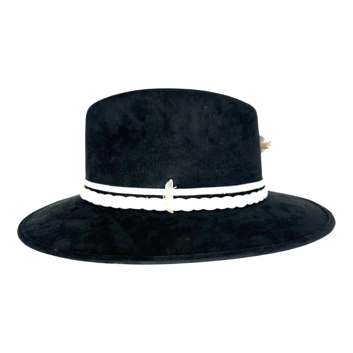 The Macarena Suede Hat with Feather is a unique and stylish accessory that is perfect for adding a touch of personality to any outfit. Made from high-quality suede, this hat is soft and comfortable, making it ideal for everyday wear.Feather embellishment and "Dreamer" writing add a touch of bohemian charm and individuality. The feather is securely attached to the hat and provides a natural and organic feel.Whether worn with a casual daytime outfit or dressed up for a special occasion, the Macarena Suede Hat is a unique and meaningful accessory that is sure to make a statement. It's a must-have accessory for anyone looking for a stylish and meaningful hat that will keep them comfortable while also adding a touch of individuality to their wardrobe.