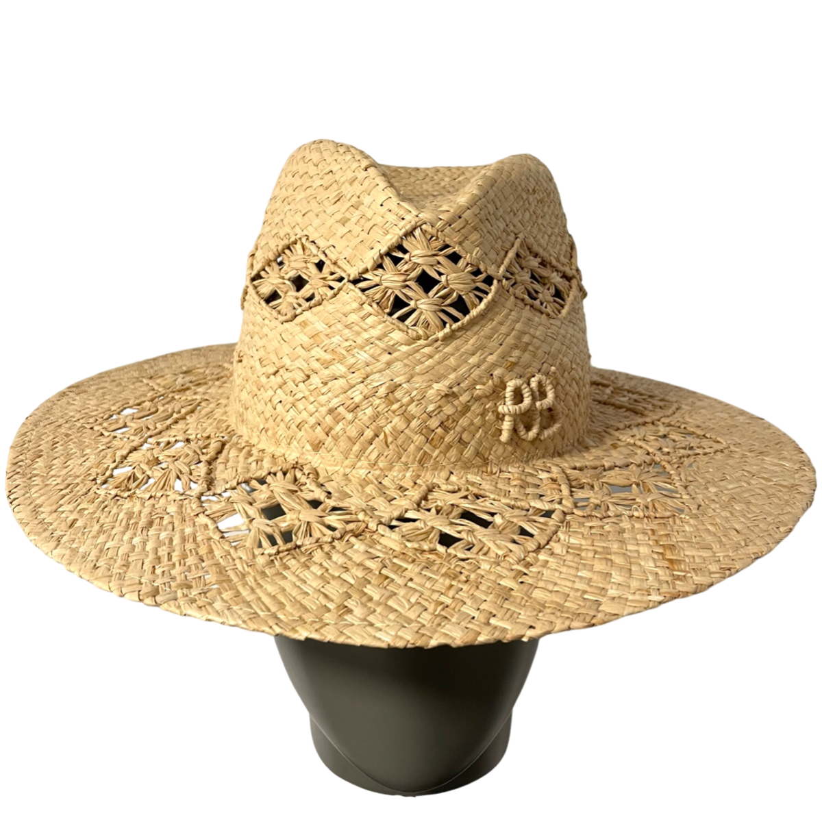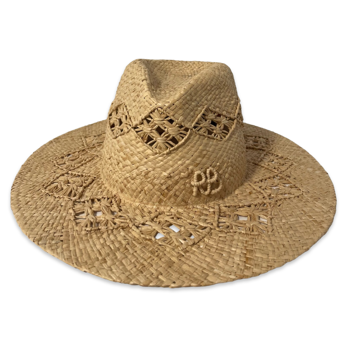 带有字母组合装饰的草编软呢帽是一款奢华且时尚的配饰,将经典的软呢帽轮廓与个性化优雅完美结合。这款帽子是Ruslan Baginskiy著名系列的一部分,以其独特设计和精湛工艺闻名。