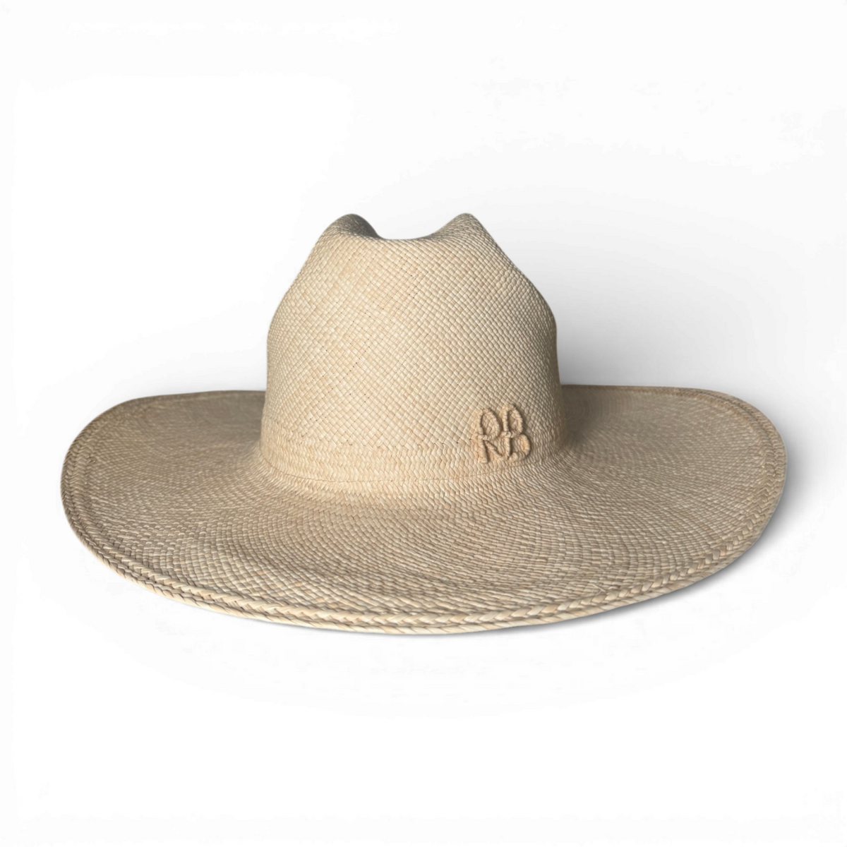 ```html 草帽上饰有字母组合 ```