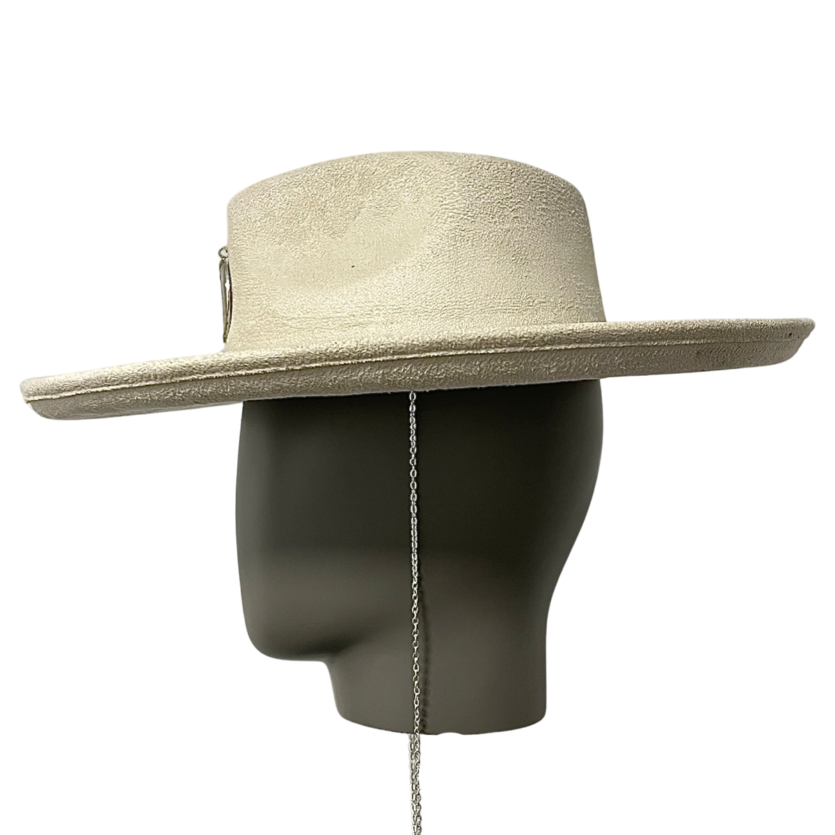 用我们的米色绒面革软呢帽提升您的造型,这是一款经典且精致的配饰,散发出优雅与时尚气息。采用奢华的绒面革制成,这顶帽子质地柔软细腻,为任何装扮增添一丝精致感。