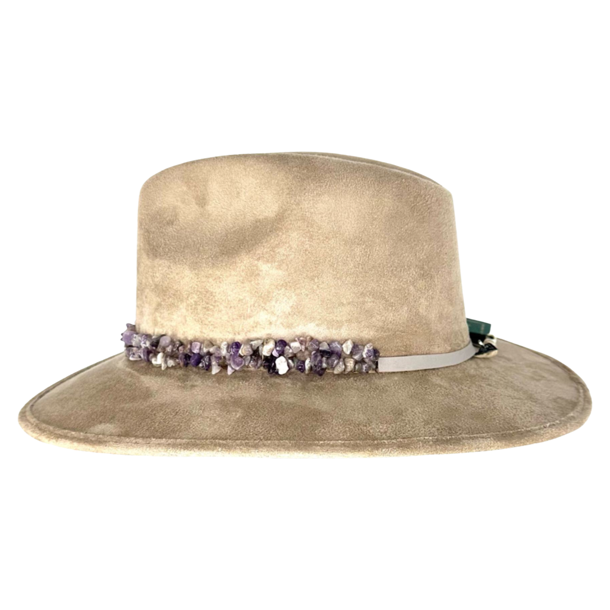 Another eye-catching feature of the Tuluminati Suede Hat is the suede material itself, which is soft and luxurious. The material is perfect for anyone who wants a hat that is both stylish and comfortable to wear. The bond made of small purple stones adds a touch of elegance and charm, while the high-quality suede material makes it comfortable and durable for long-term wear.
