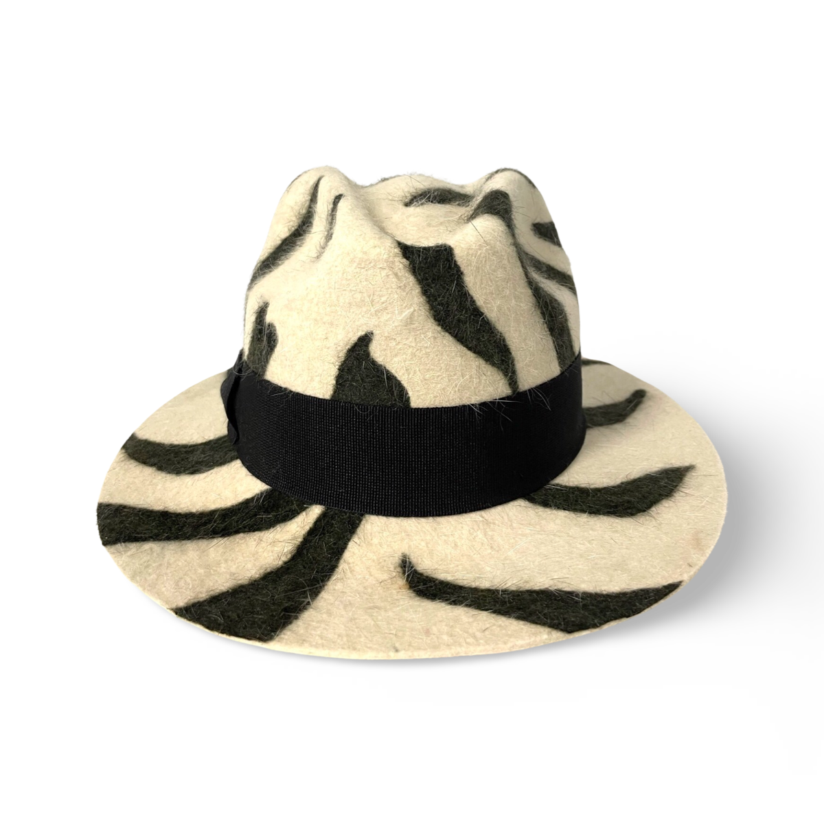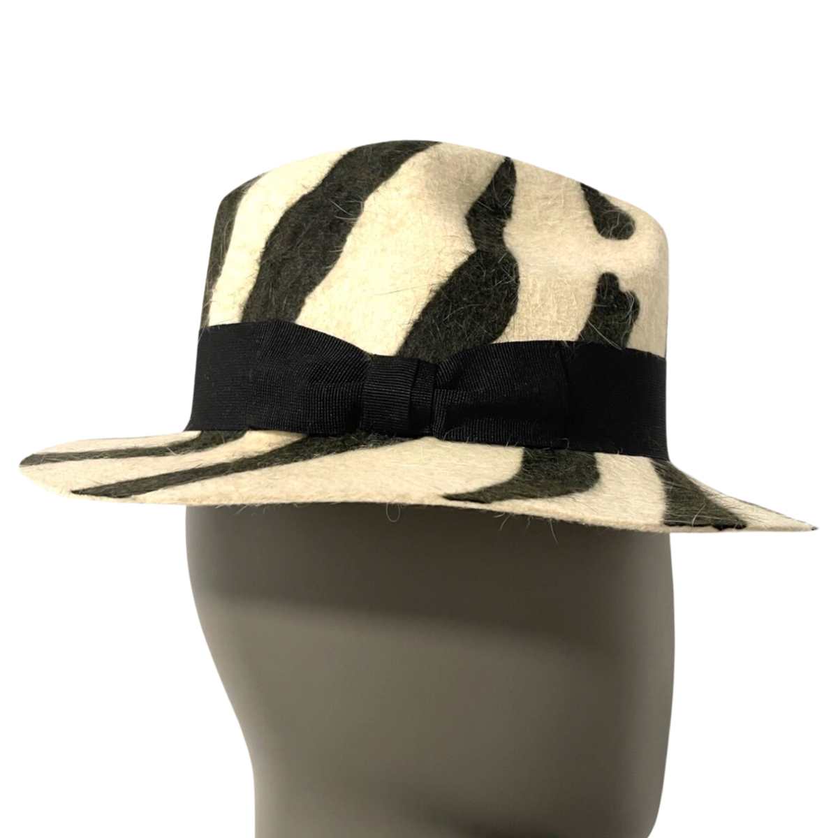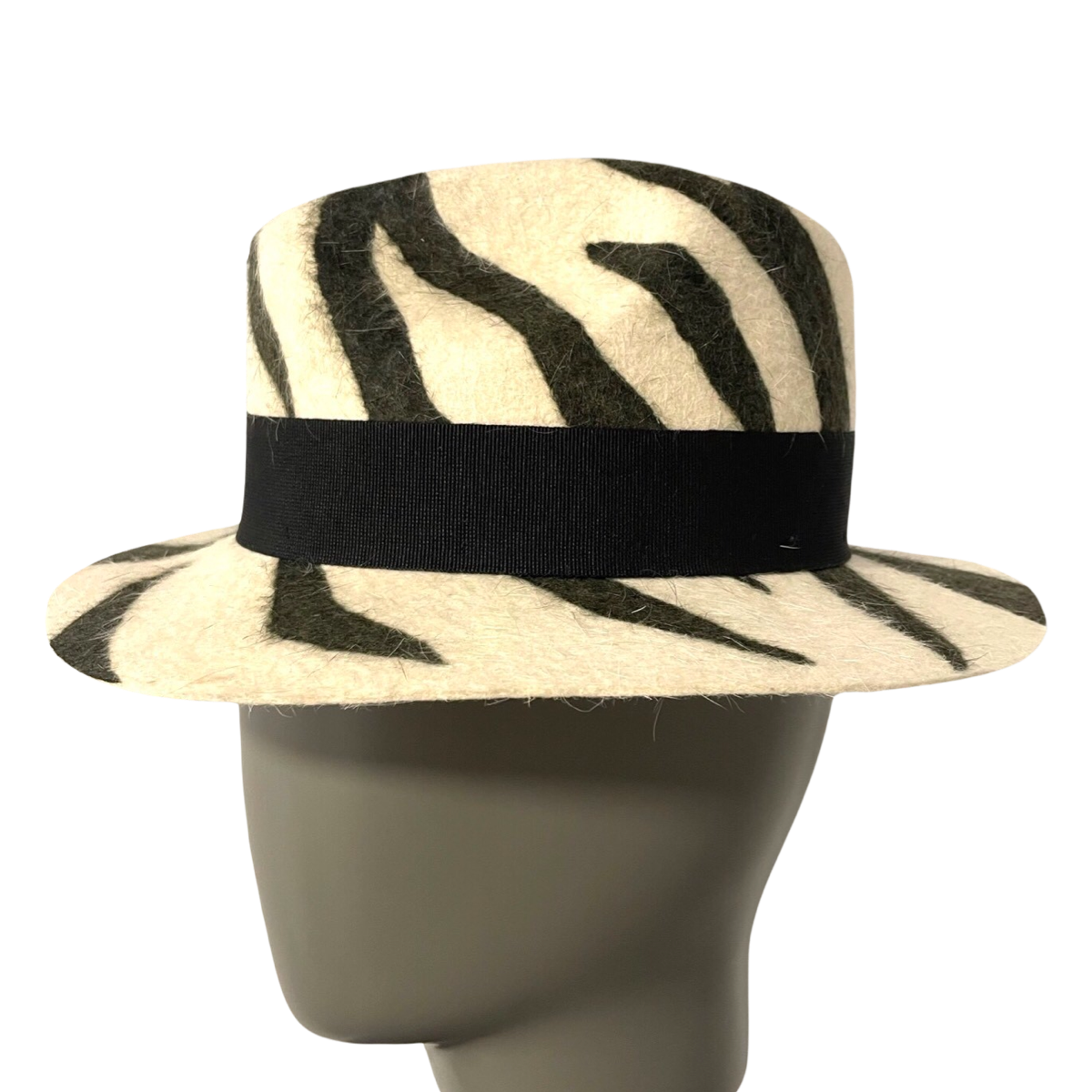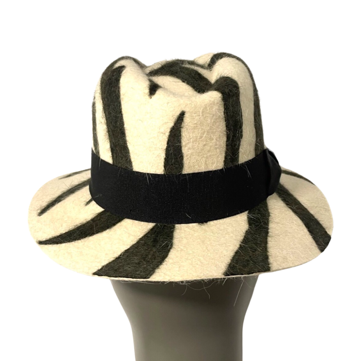 通过斑马纹软呢帽表达您的个性并保持时尚,结合多种材质、醒目的斑马纹图案和黑色棉质丝带,打造真正独一无二的造型。