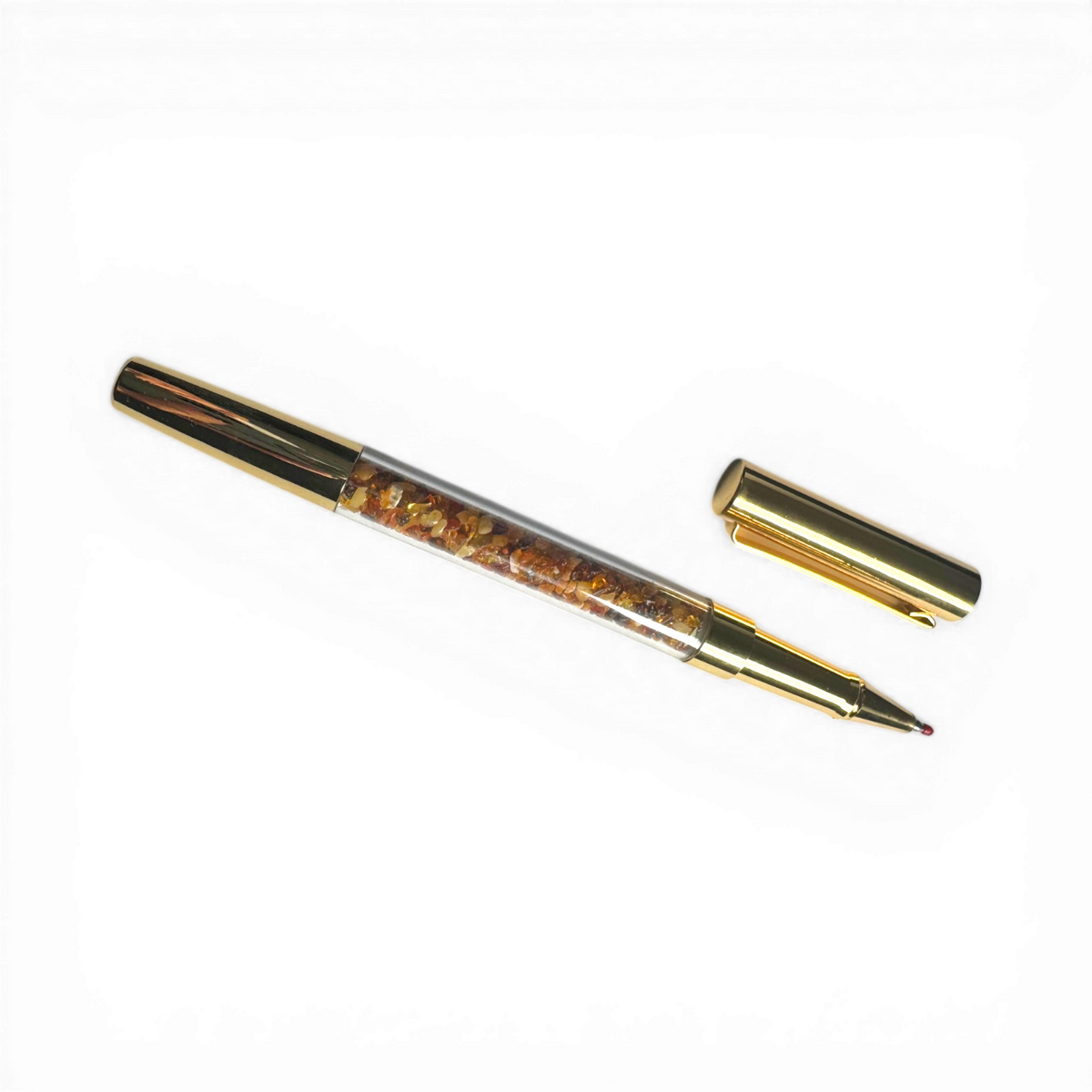 Amber-Accented Pen (High-Quality Gold Plated Fittings)The Vibe: For the visionary. This pen balances the regal weight of gold with the prehistoric energy of amber. It doesn't just write; it signs legacies.Style Tip: Keep this in your breast pocket. It’s a power accessory that commands respect during contract signings or while journaling your next big idea.