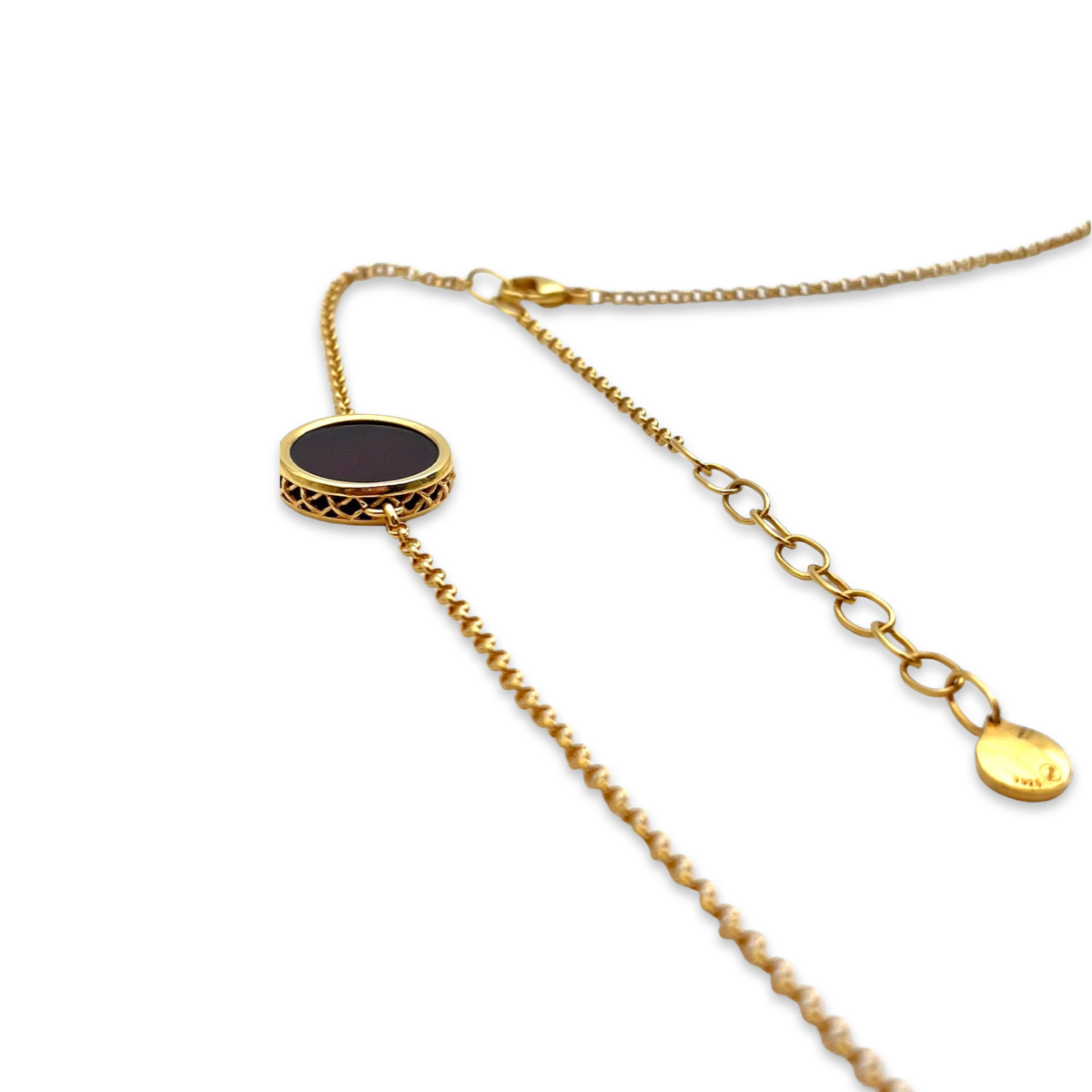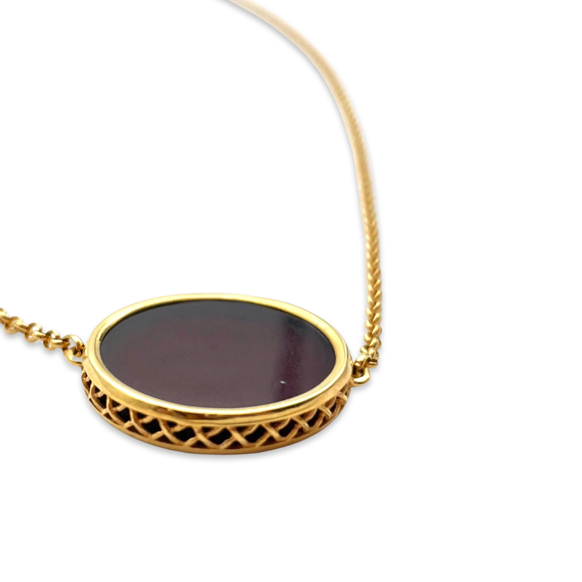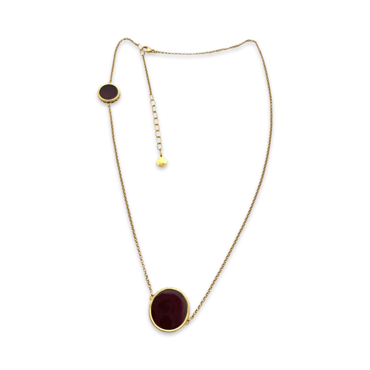 This beautiful necklace features a gold-plated chain and a stunning red amber pendant. The pendant has a smooth, polished surface that reflects light and enhances the stone's rich color. The gold-plated 24k chain complements the pendant perfectly and adds a touch of elegance to the piece. The necklace is crafted with high-quality materials and has a polished finish that adds to its luxurious look. It has a lobster claw clasp that ensures a secure and comfortable fit. This piece is perfect for adding a pop of color to any outfit and is sure to be a cherished addition to any jewelry collection.