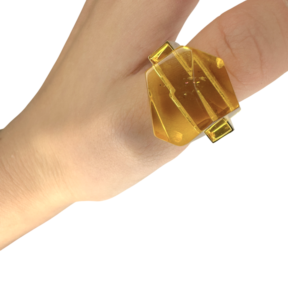 一款优雅的戒指,采用天然琥珀镶嵌在精致的镀金细节中。琥珀的温暖光芒和简洁的轮廓营造出永恒而精致的风格。富有表现力却又低调——非常适合日常佩戴或特殊场合。