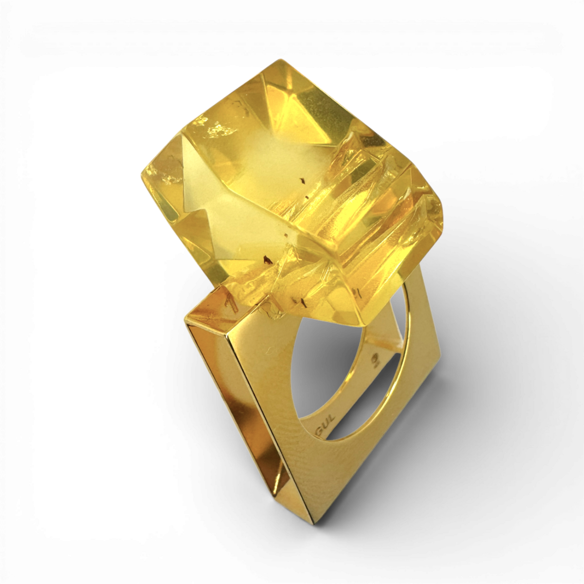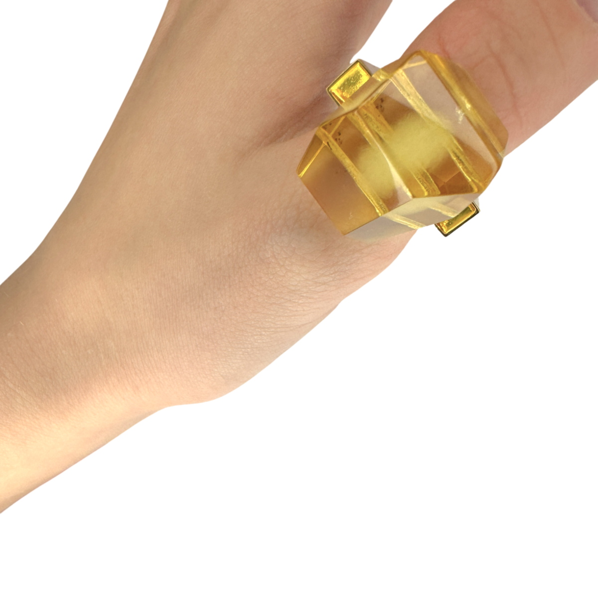 一款优雅的戒指,采用天然琥珀镶嵌在精致的镀金细节中。琥珀的温暖光芒和简洁的轮廓营造出永恒而精致的风格。富有表现力却不张扬——非常适合日常佩戴或特殊场合。