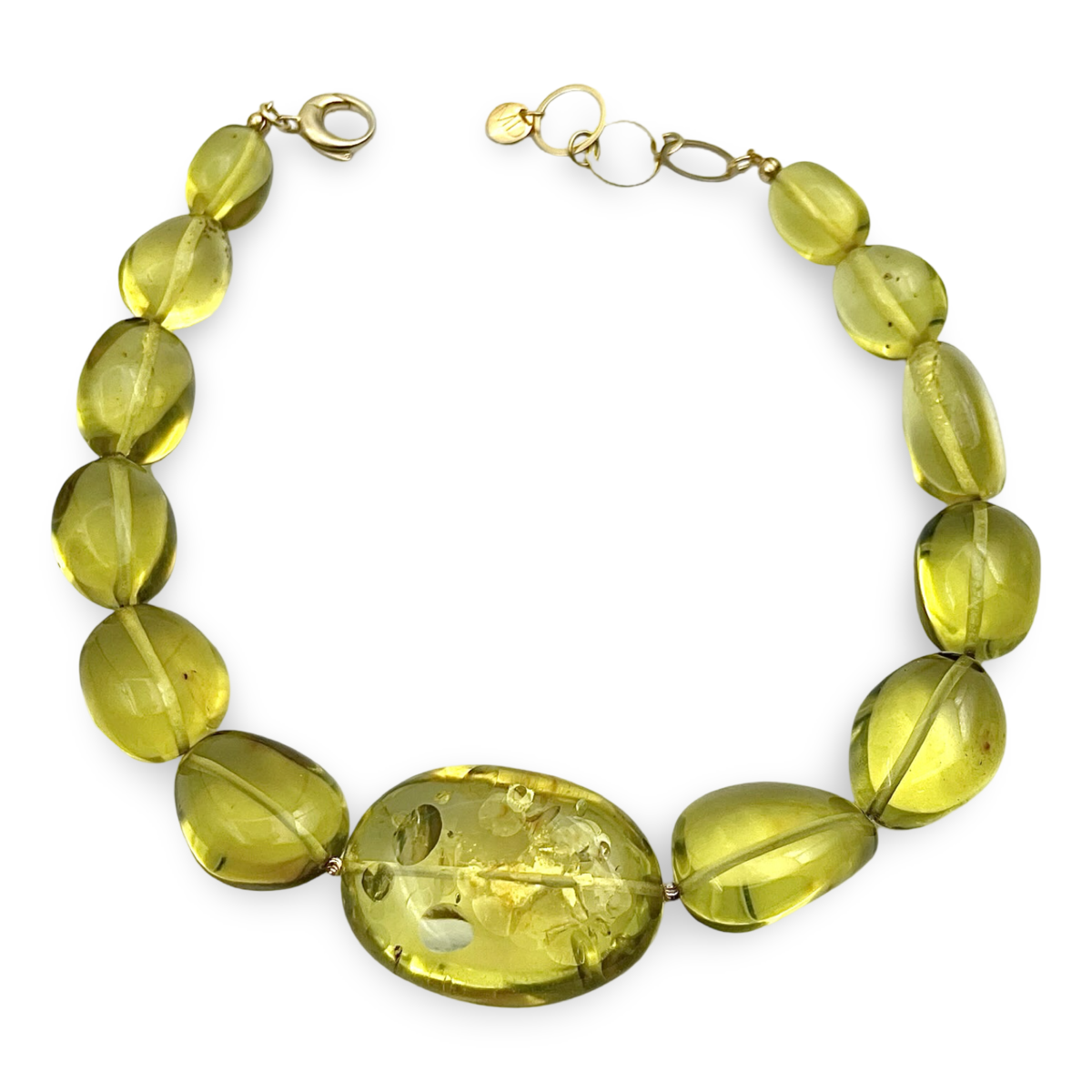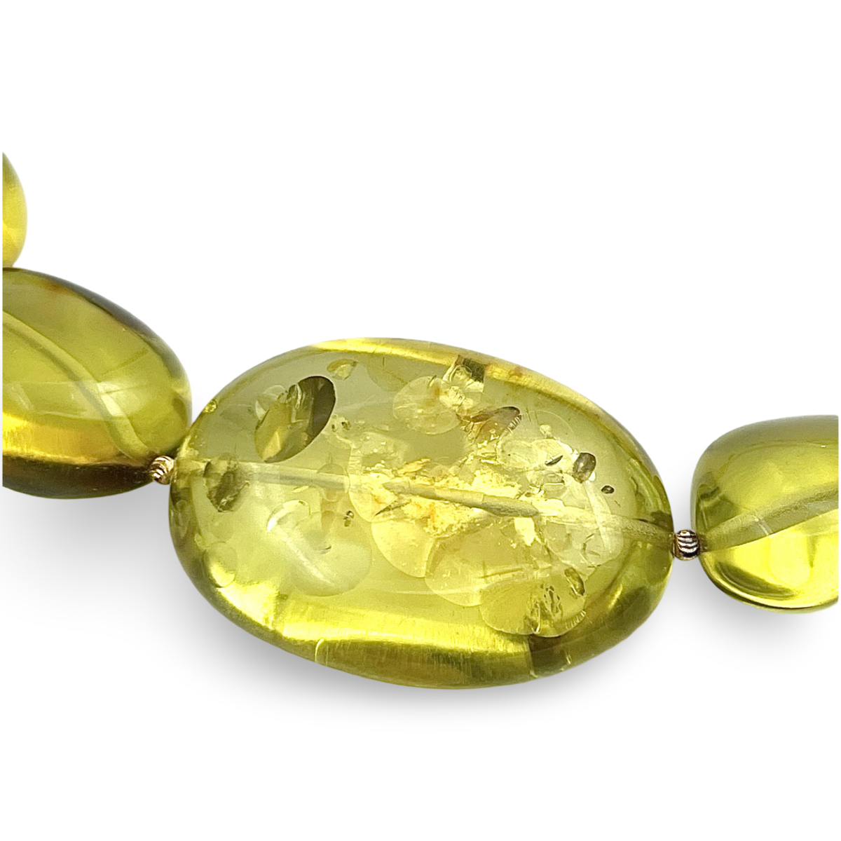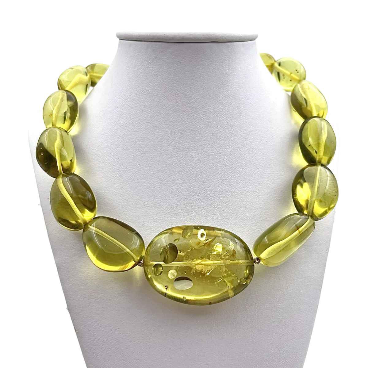 这款绿色琥珀项链配有925镀金银饰细节,是一款精致奢华的配饰,融合了绿色琥珀的自然美与金色点缀的优雅。经过精心打磨的深绿色琥珀珠子突显了宝石的天然魅力,而镀金银饰则增添了一丝精致感。这款多功能项链既适合休闲装,也适合正式场合,是任何珠宝收藏的完美补充。它也是赠送给欣赏独特高品质工艺人士的绝佳礼物。