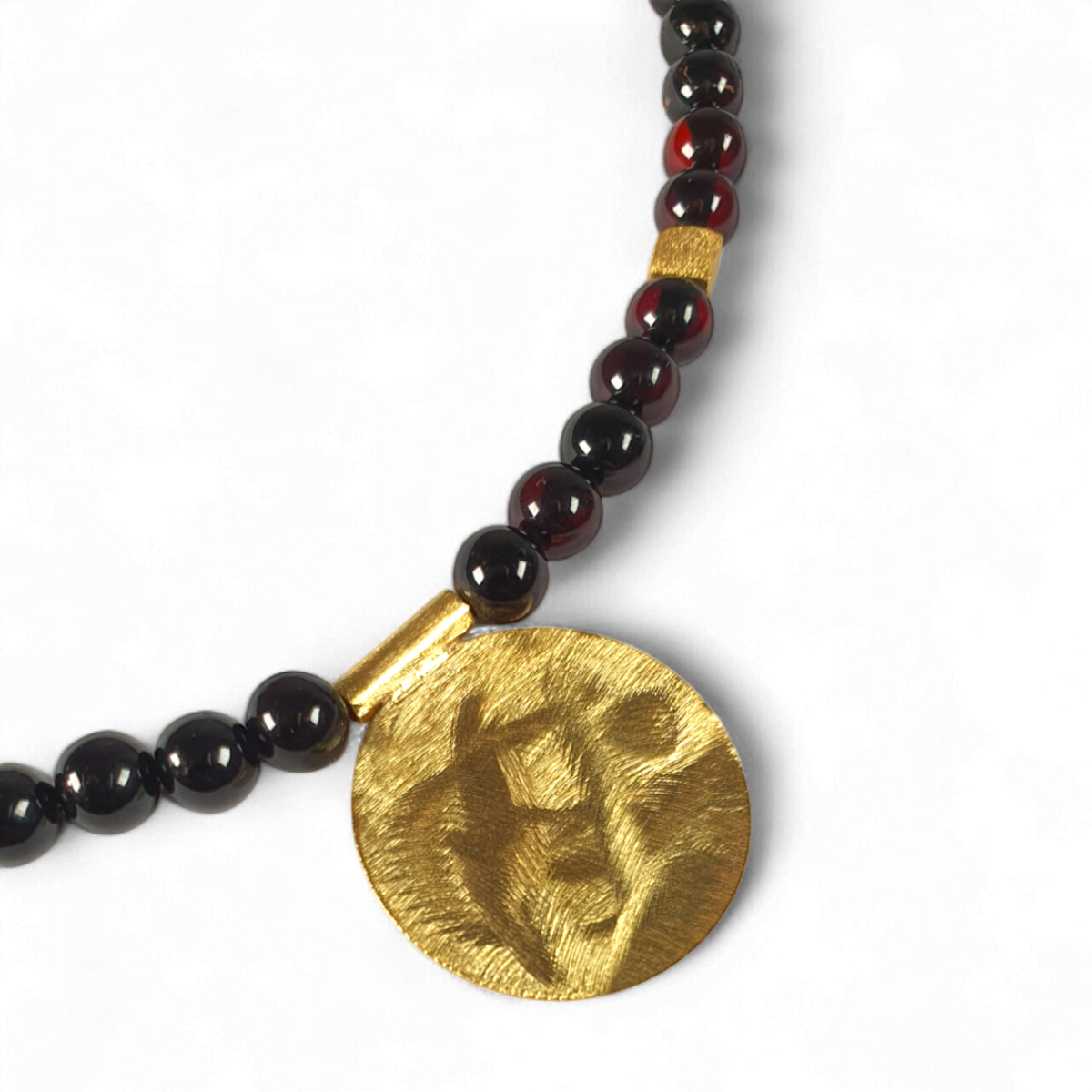 这款项链是自然与优雅的精致融合,采用天然琥珀石搭配镀金银饰。琥珀的温暖光泽与金色细节完美协调,打造出既精致又百搭的永恒配饰。非常适合提升日常造型或为晚装增添一抹奢华感。