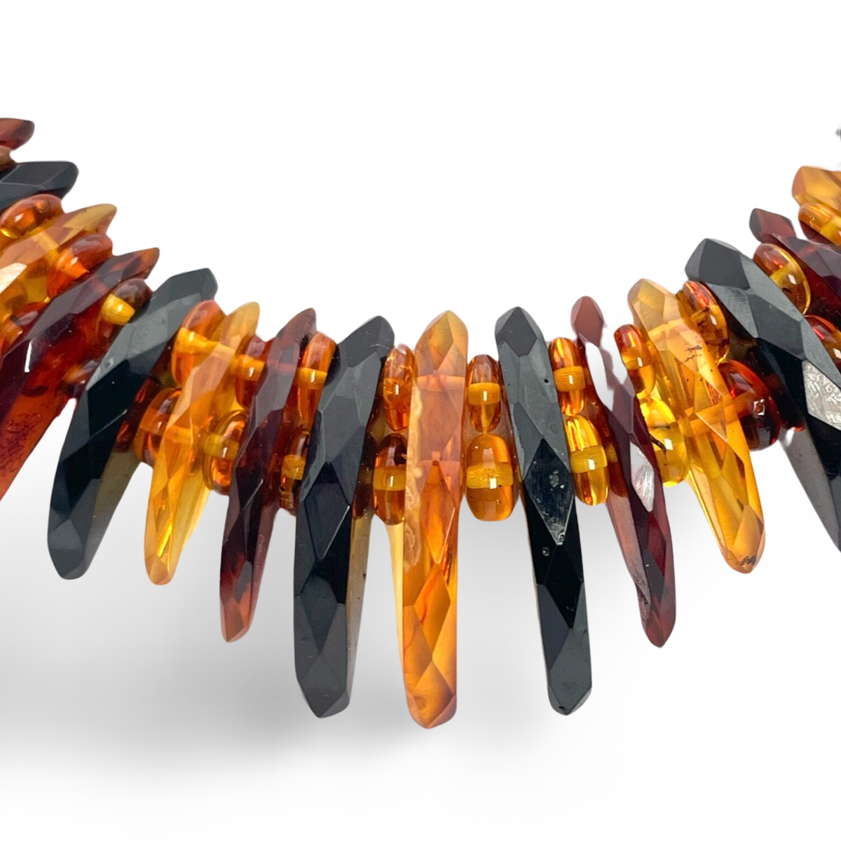 用我们的“伯爵夫人”琥珀项链提升您的风格,这是一件精心制作的作品,散发出皇家魅力和奢华感。这条项链见证了多彩琥珀的永恒美丽和多样性。