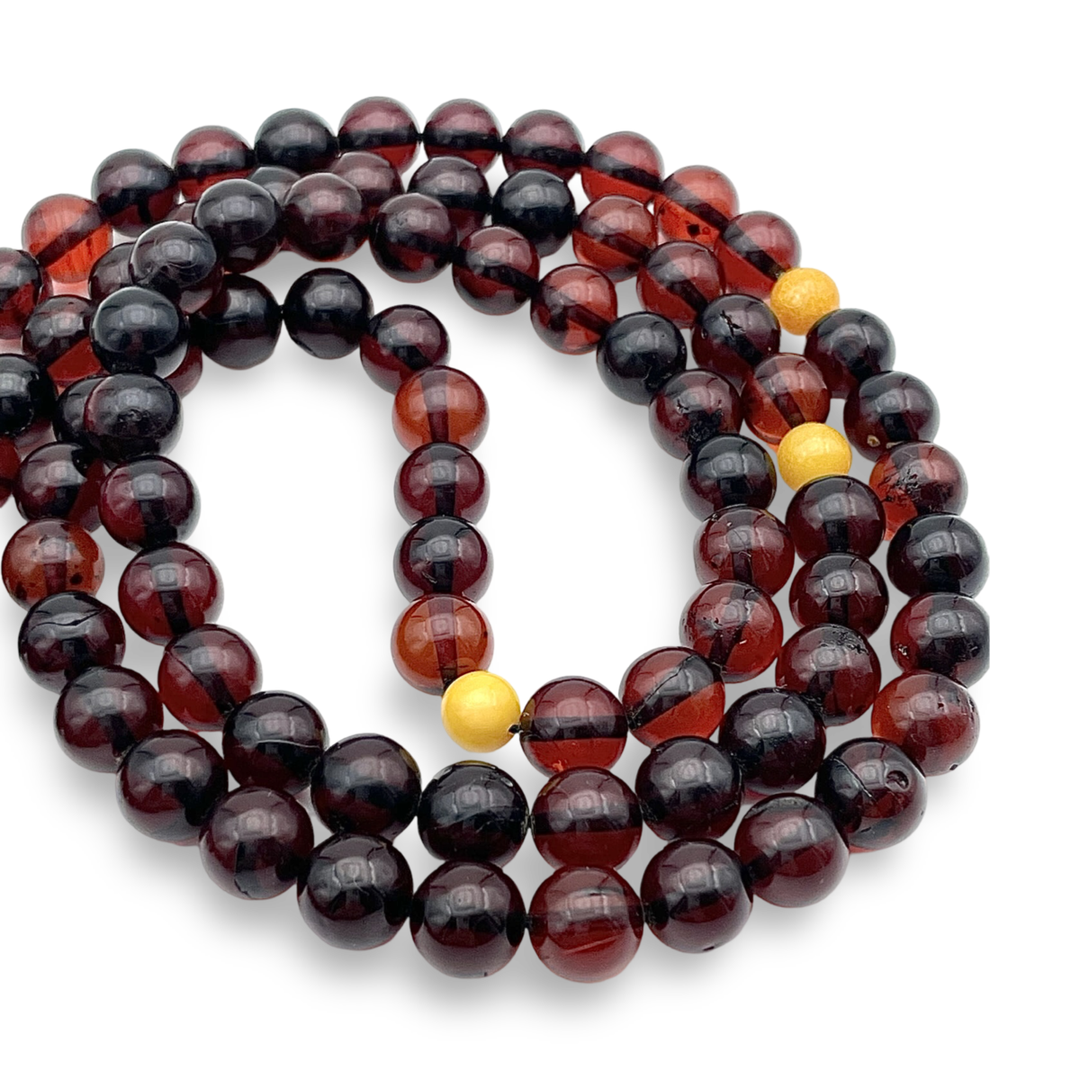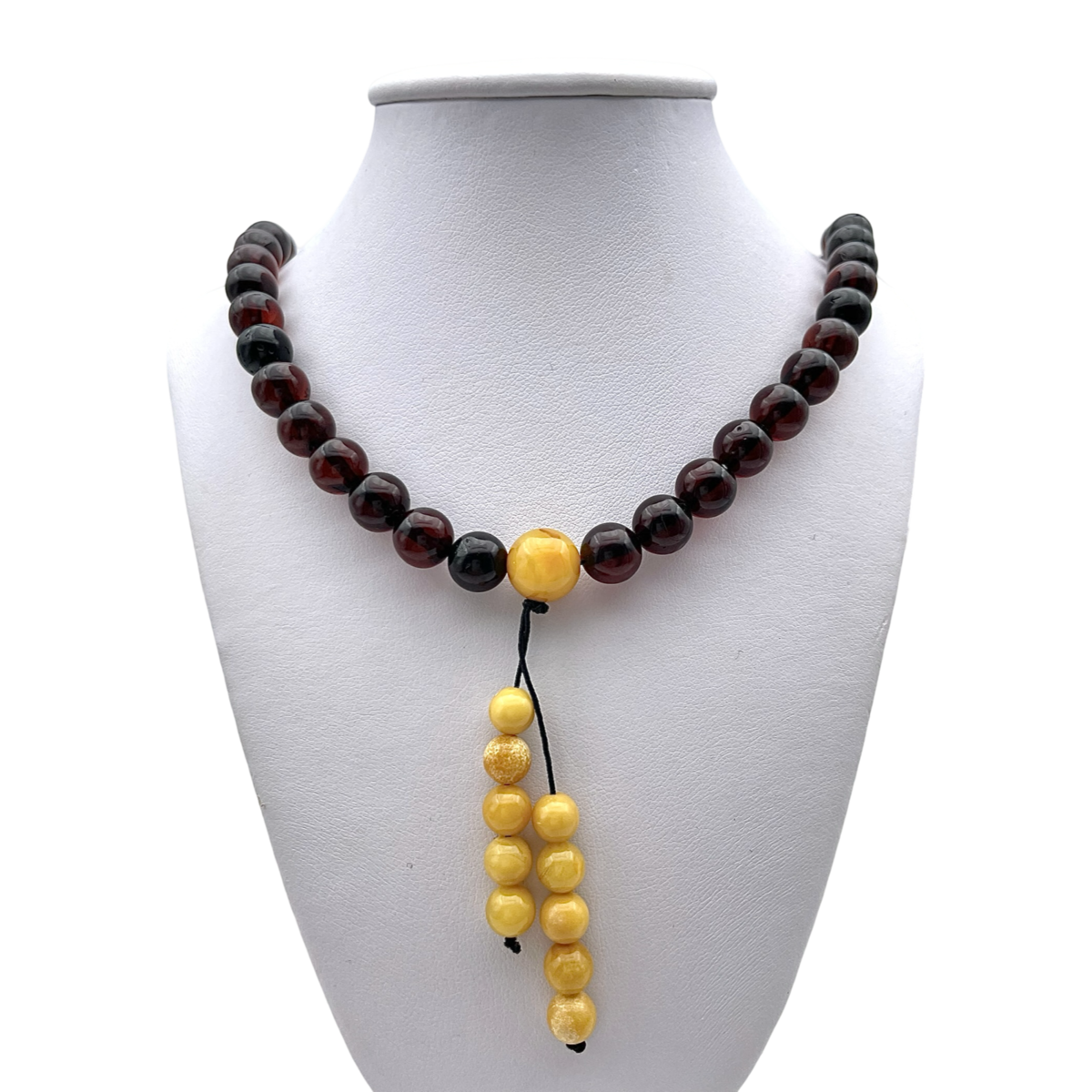 红色琥珀念珠是一件迷人且富有意义的作品,由深沉浓郁的红色琥珀珠子制成。每颗珠子都经过精细打磨,展现出琥珀天然的温暖与美丽。传统上用于祈祷、冥想或作为象征性的配饰,这串念珠将精神意义与引人注目的美学完美结合。鲜艳的红色调增添了一种力量与激情感,使其不仅是虔诚的工具,也是独特的珠宝饰品。无论是个人使用还是作为贴心礼物,红色琥珀念珠都体现了优雅与精神深度。
