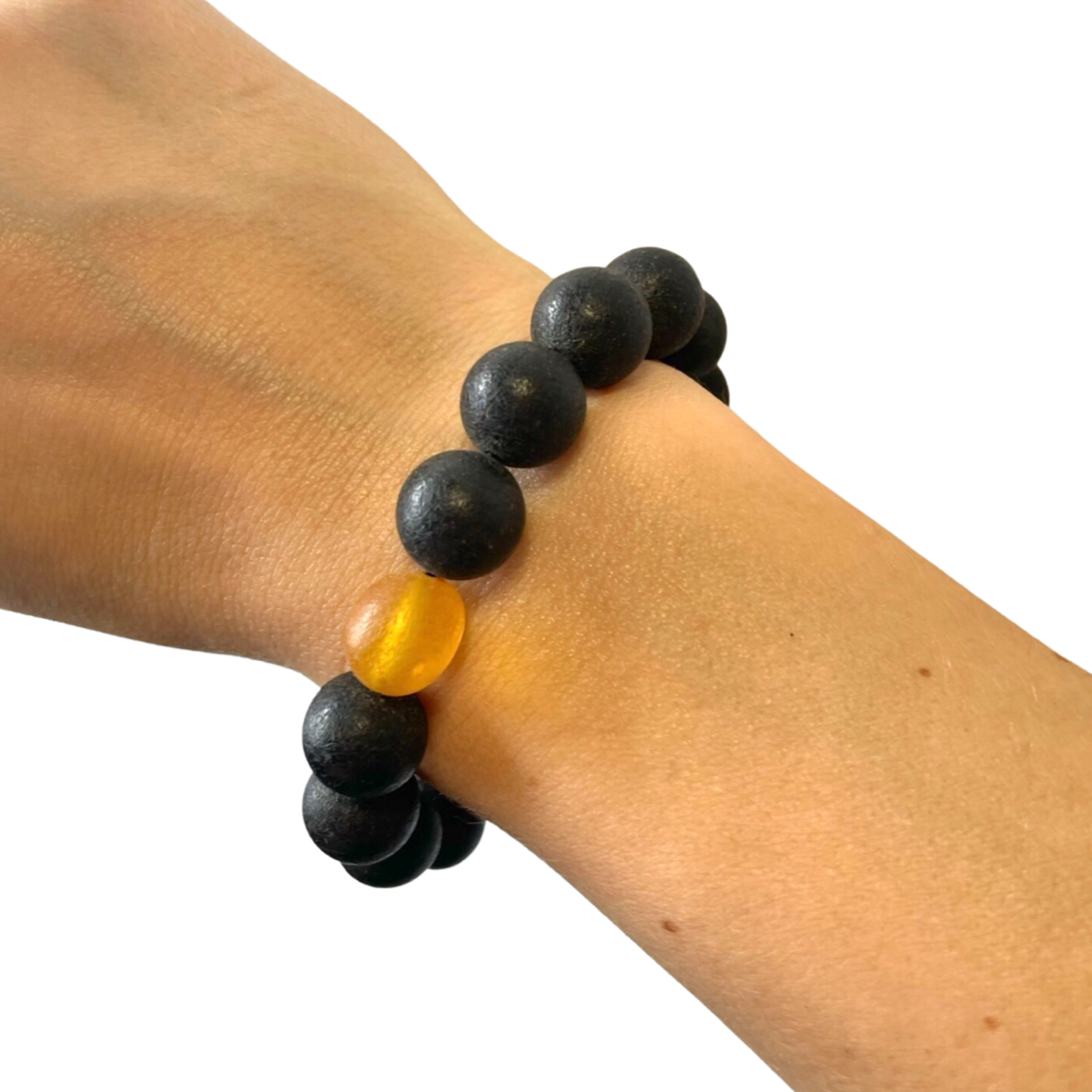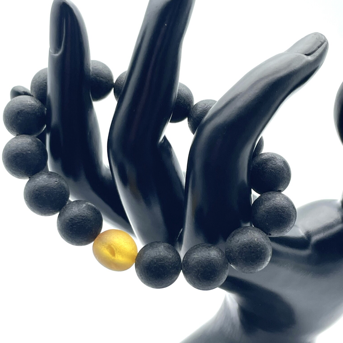 由真正的黑琥珀珠子制成,每颗珠子都有其独特的纹理和色调,这款手链散发出神秘的气息。黑琥珀珠子的深沉暗色既醒目又多变,使其成为一款百搭的配饰,能够衬托各种风格。