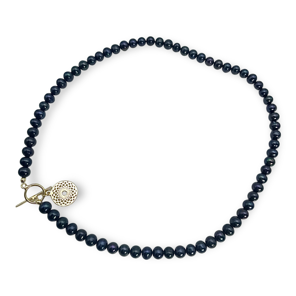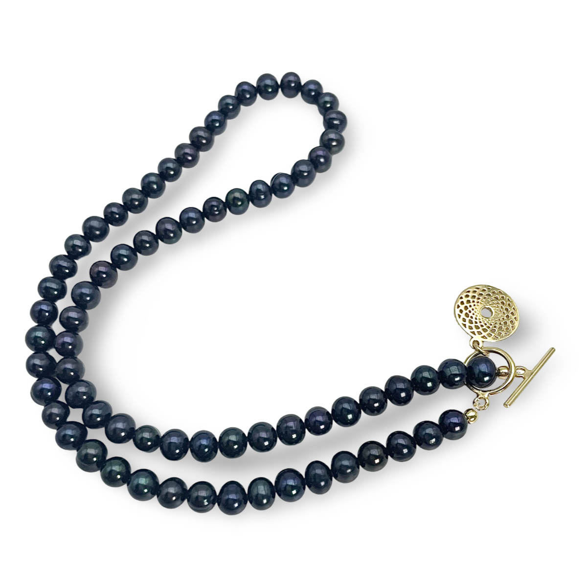 拥抱黑珍珠的永恒优雅与镀金装饰的奢华美感,这款精美项链将提升您的珠宝收藏,无论走到哪里都能成为焦点。