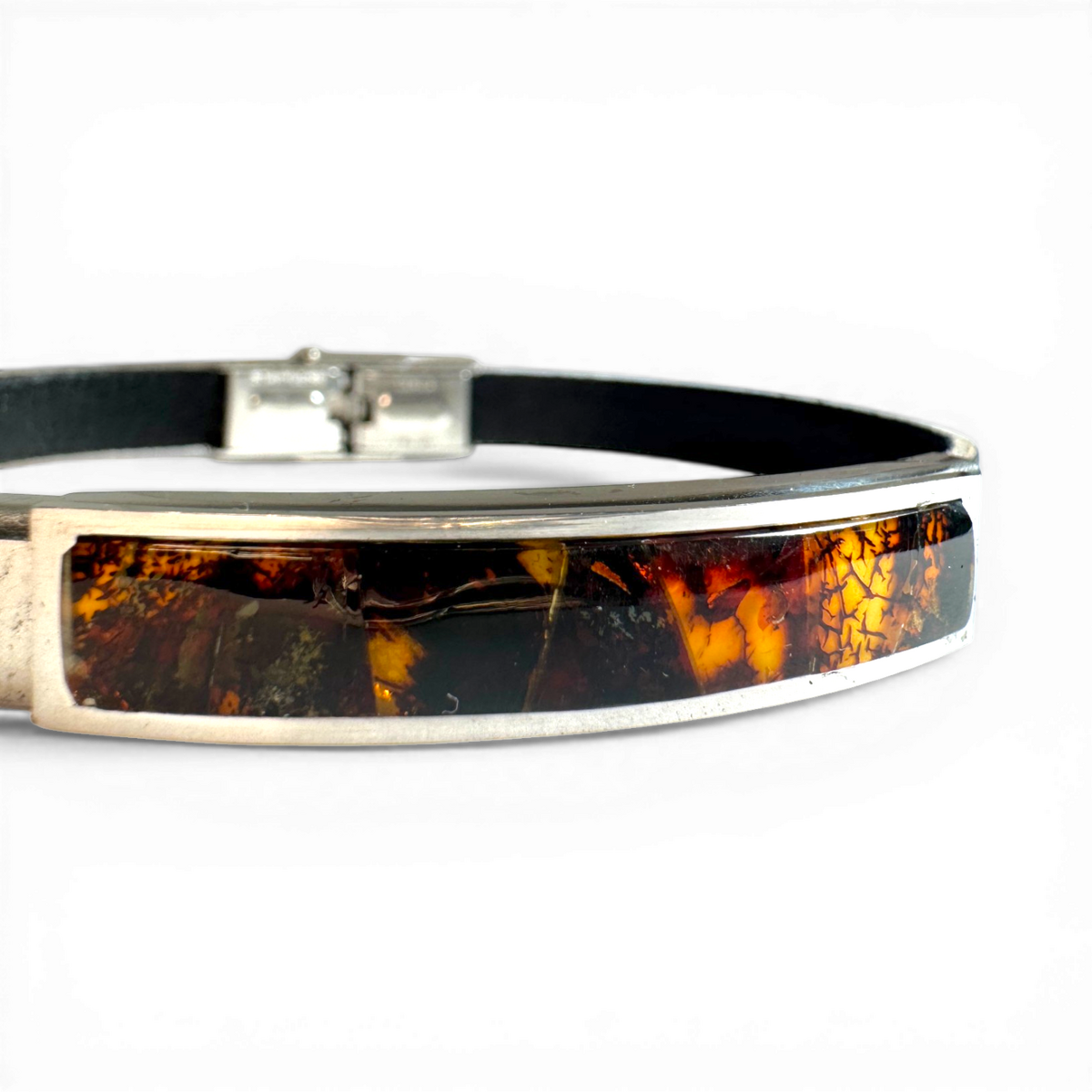 Bracelet with Amber (Stainless Steel & Leather)