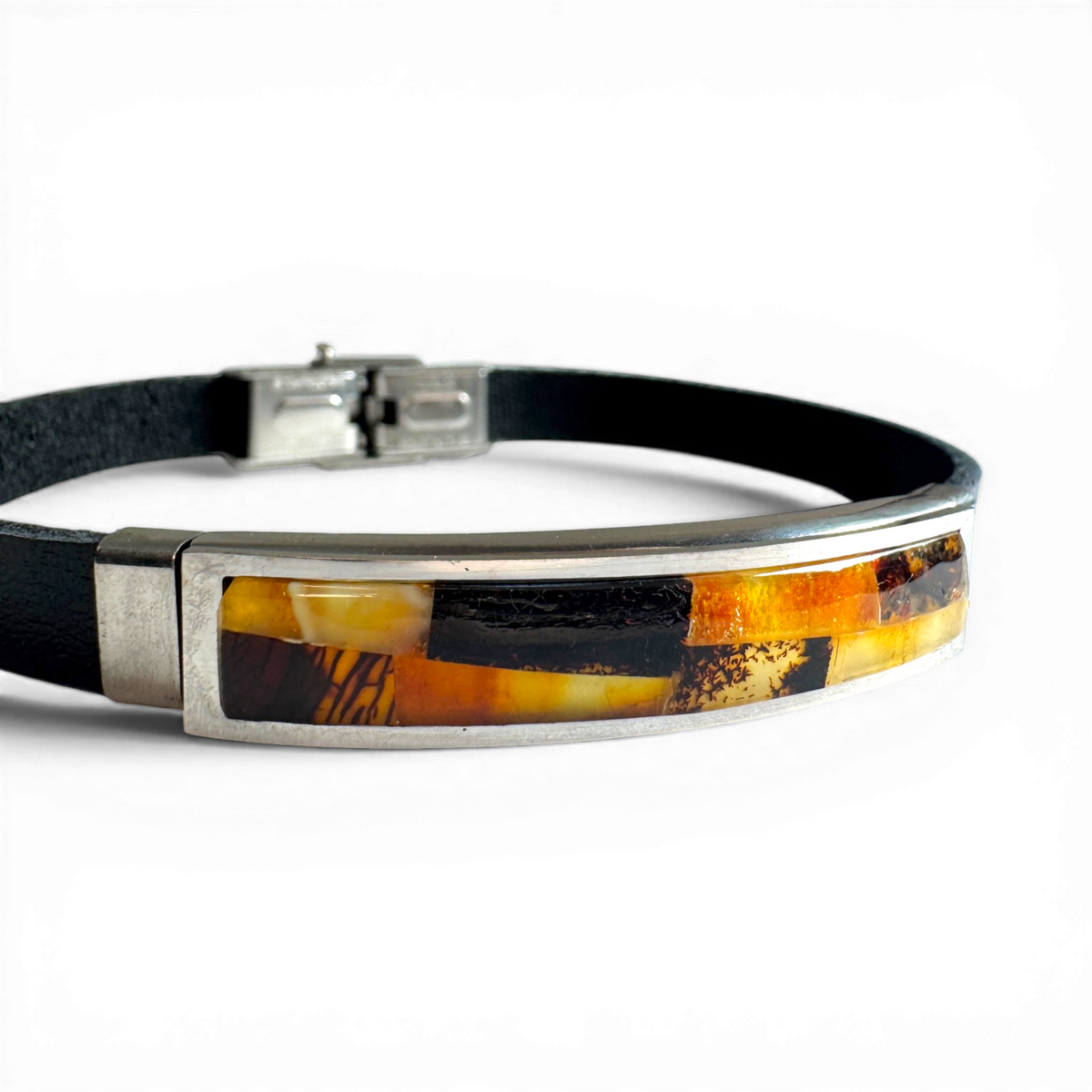 Bracelet with Amber (Stainless Steel & Leather)