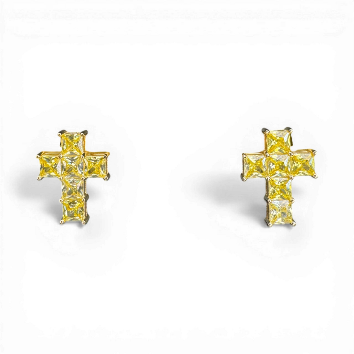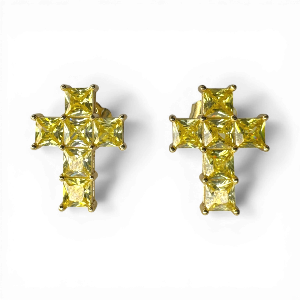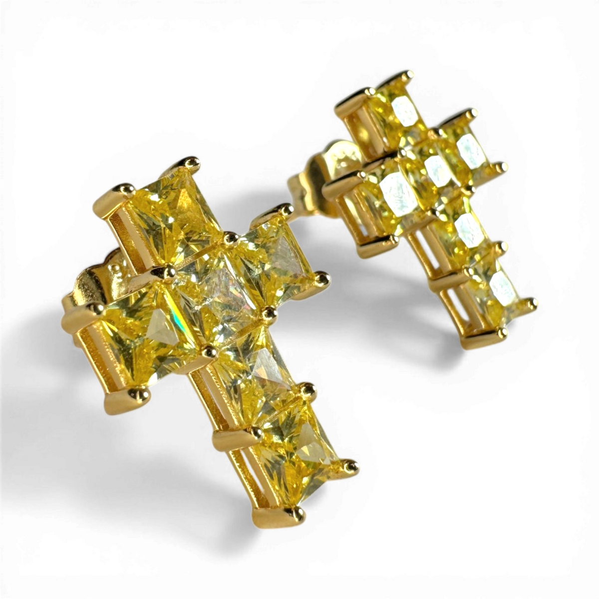 醒目的十字形耳环,采用925纯银制成,镶嵌方形黄色锆石。明亮、富有表现力且结构优雅。
