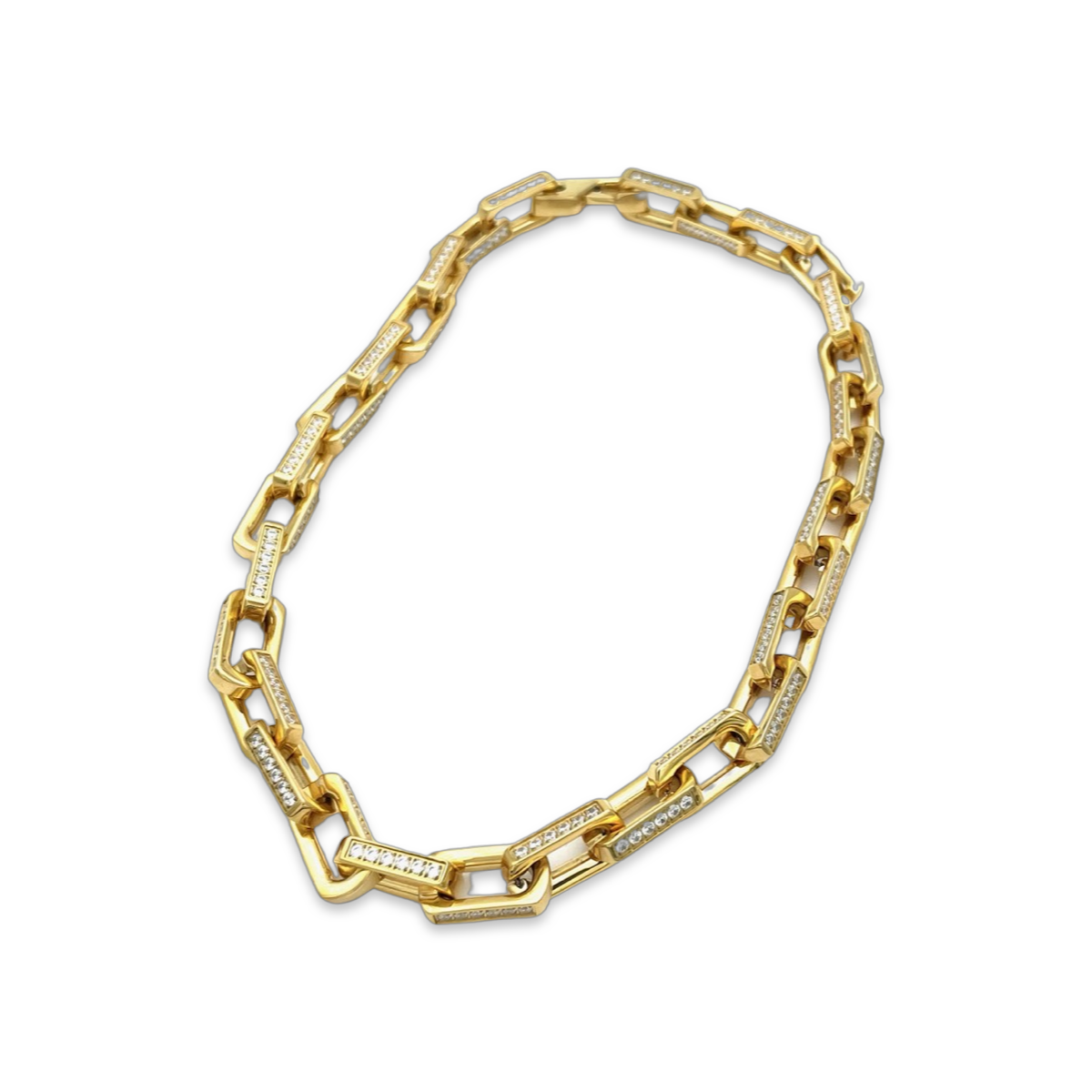 This gold-plated chain necklace with zircon stones is a beautiful and elegant accessory for any outfit. The necklace is made with high-quality materials and features a links that is adorned with shimmering zircon stones.