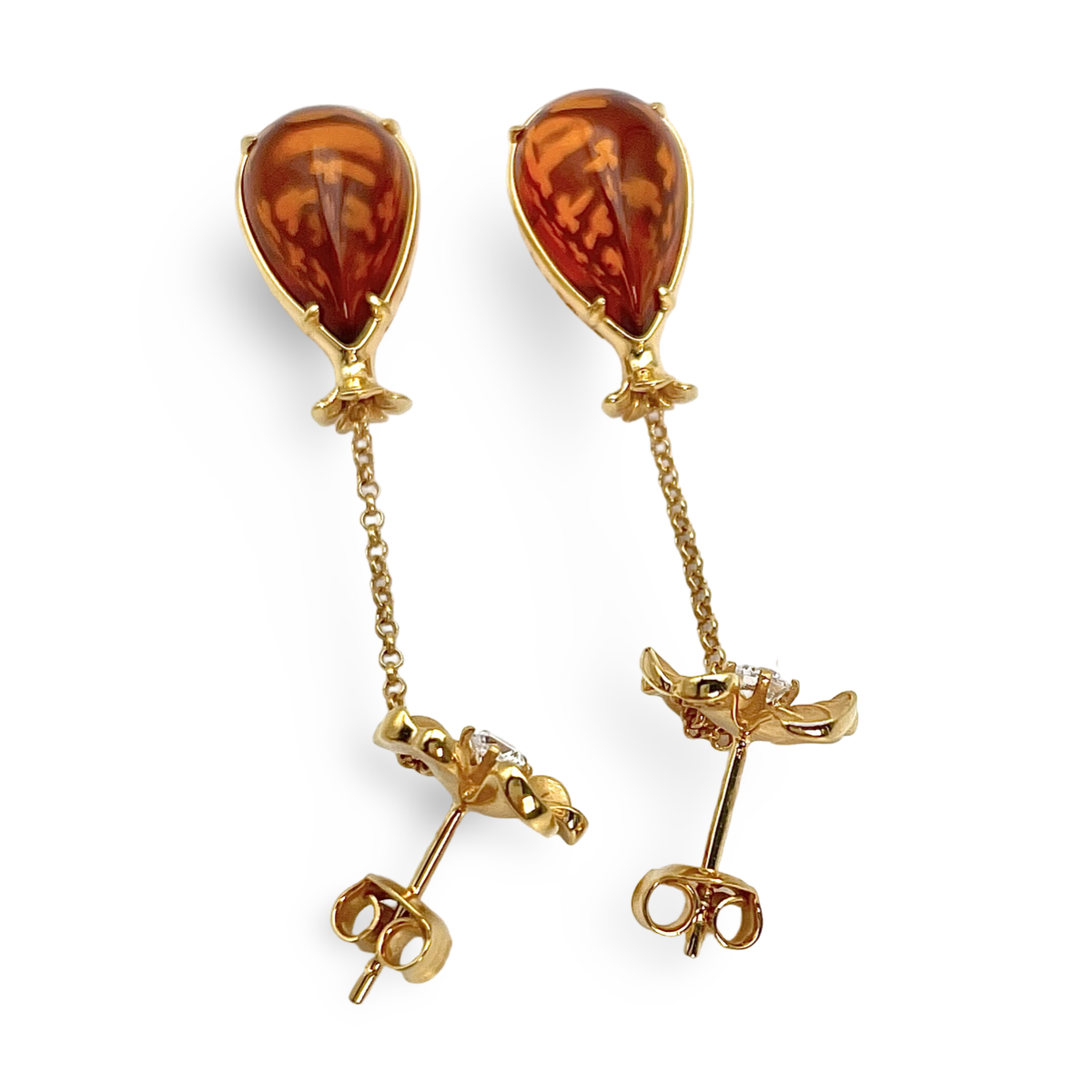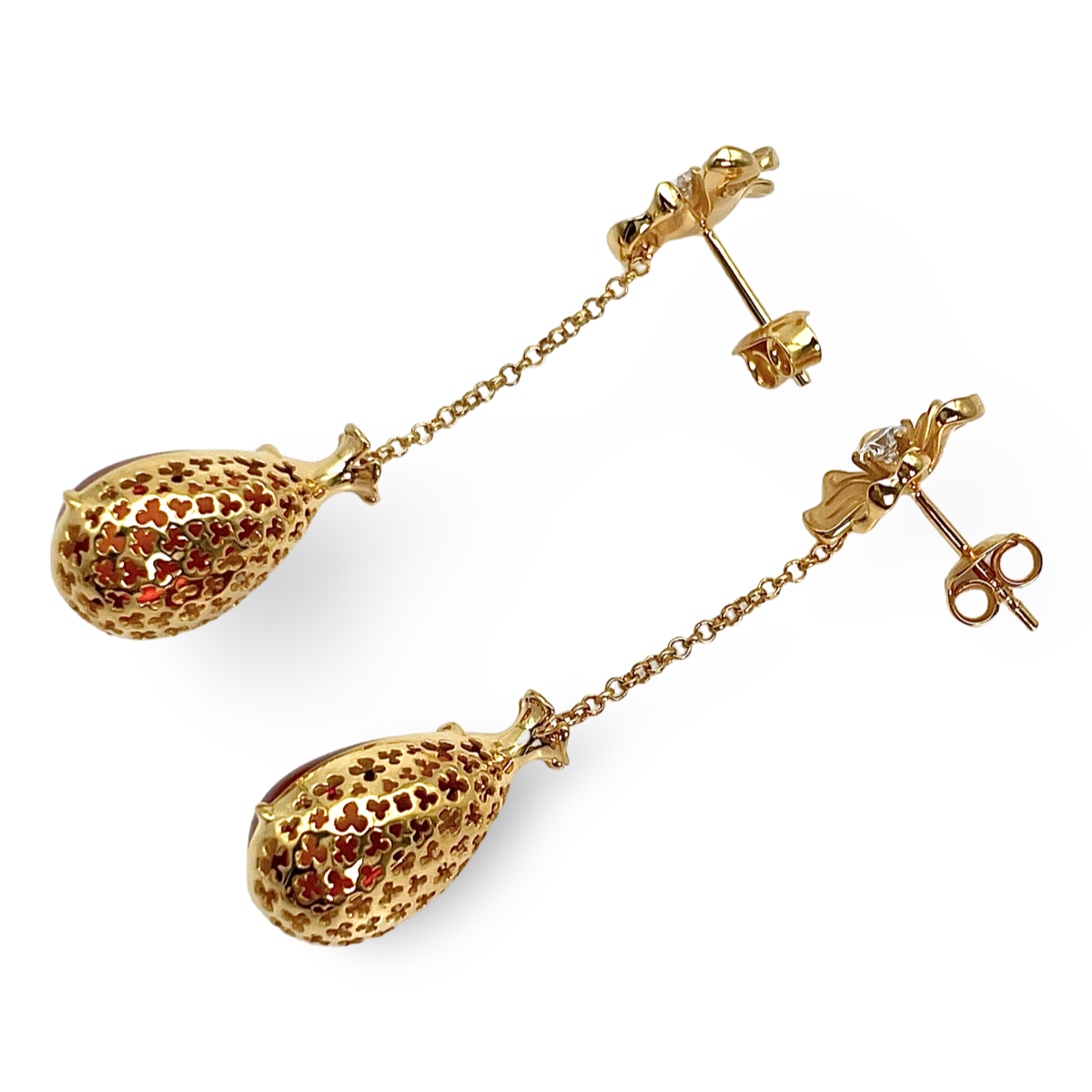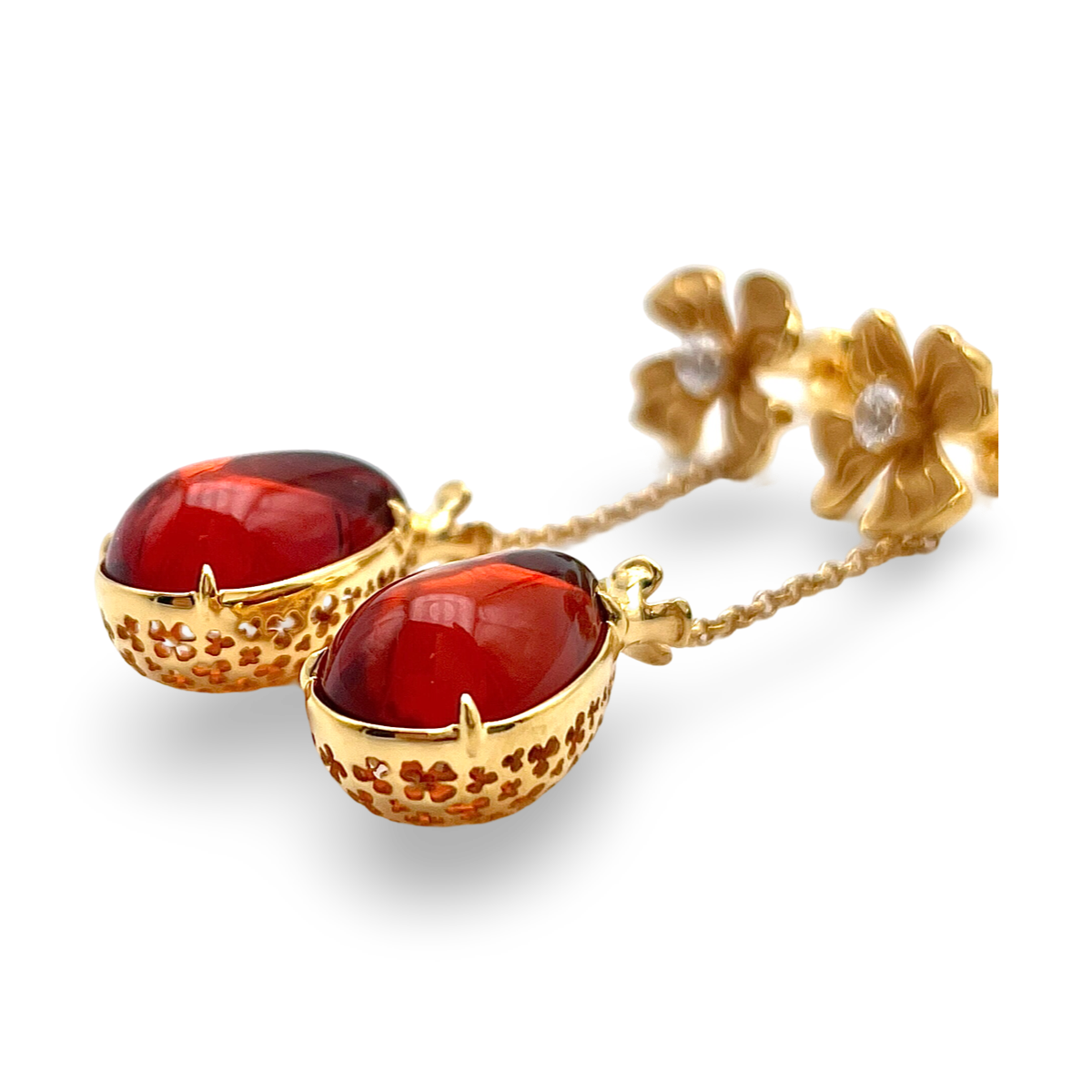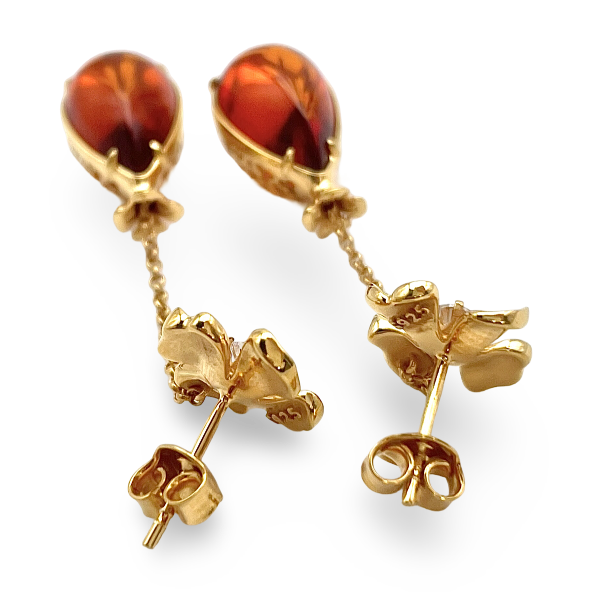 这些镀金耳环是琥珀和锆石的惊艳组合,打造出一件美丽且独特的珠宝。琥珀呈现温暖的红色,而锆石则是闪耀的宝石,拥有多种白色调。