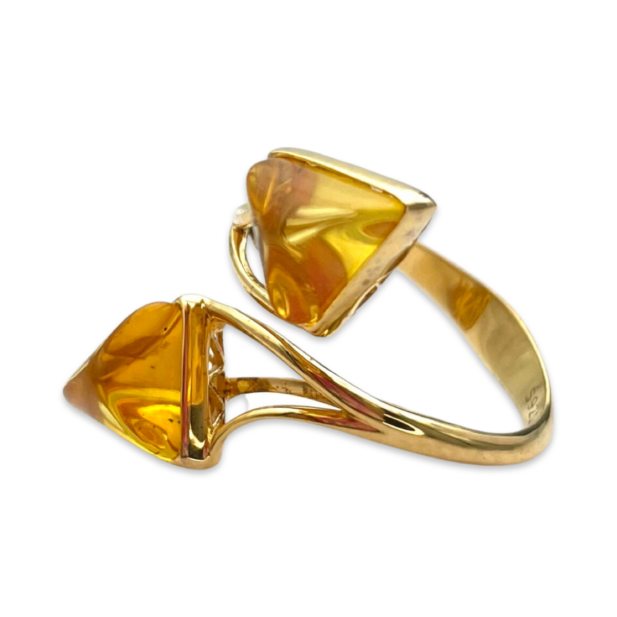 This elegant gold-plated ring features a light, transparent pieces of genuine amber. The warm gold plating 24k complements the natural beauty of the amber, creating a luxurious and sophisticated look. The ring is available in a range of sizes to ensure a perfect fit for any finger. Whether you're dressing up for a special occasion or looking to add a touch of glamour to your everyday look, this amber ring is a timeless and versatile accessory that will make a beautiful addition to any jewelry collection. It's a perfect gift for a loved one or a treat for yourself. Add this stylish and eye-catching gold-plated amber ring to your jewelry box today.
