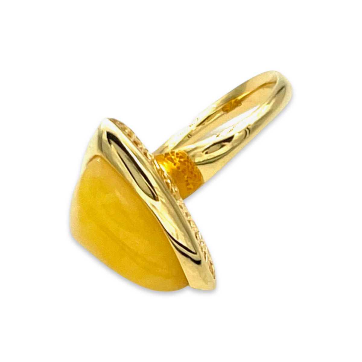 Introducing the elegant Gold-Plated Amber Ring from Amber Hats. This beautiful ring features a stunning yellow amber stone, set in a high-quality gold-plated band.The yellow amber stone is known for its warm and inviting color. The gold-plated band provides a beautiful contrast to the amber stone, making this ring a perfect accessory for any outfit.The gold plating 24k not only provides a luxurious look but also ensures the durability and longevity of the ring. Each ring is handcrafted by skilled artisans, ensuring that no two pieces are exactly alike.This Gold-Plated Amber Ring is a timeless and versatile piece of jewelry that can be worn on any occasion, and also makes a great gift for someone special.Order your Gold-Plated Amber Ring today and add a touch of sophistication and warmth to your jewelry collection.