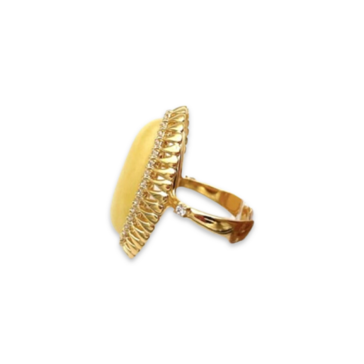 总体而言,镀金琥珀锆石戒指是一件令人惊艳且独特的珠宝,适合任何想为衣橱增添优雅与精致感的人士。精湛的工艺与细节关注使这款戒指成为一件真正令人珍爱的独特配饰,必将被珍藏多年。