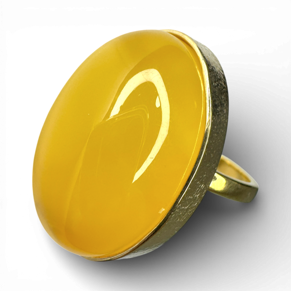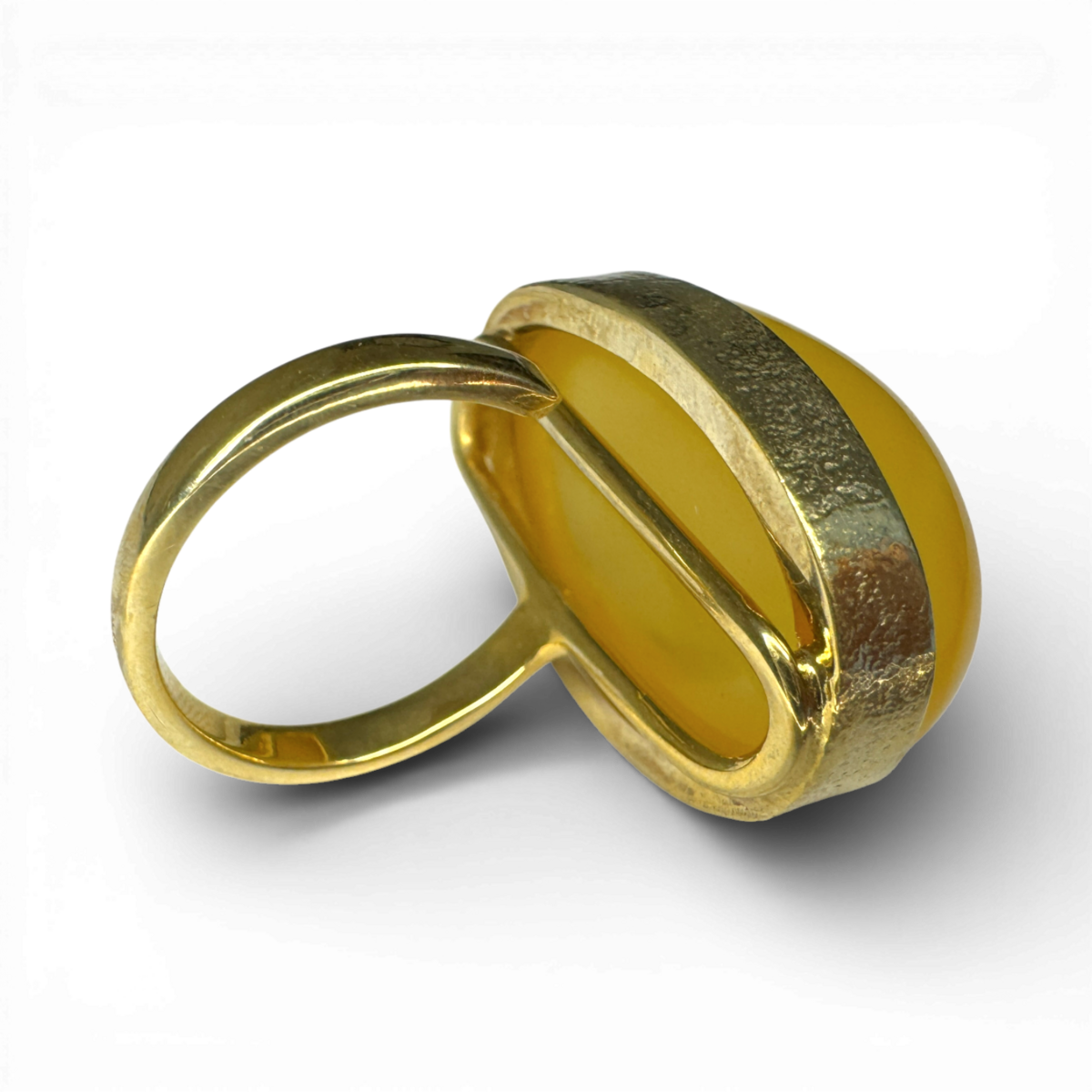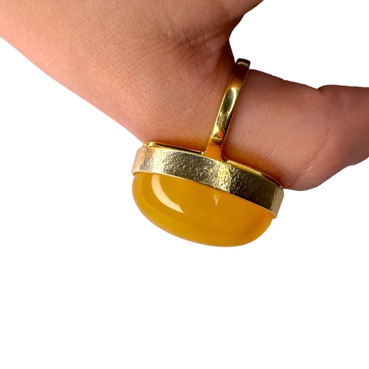 一款由镀金银制成并镶嵌天然琥珀的优雅戒指。琥珀的丰富温暖与精致设计创造出平衡、现代的宣言。经典、富有表现力且轻松时尚——适合日常佩戴或特殊场合。