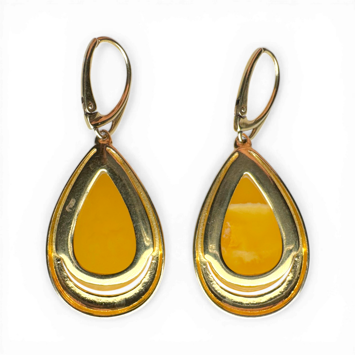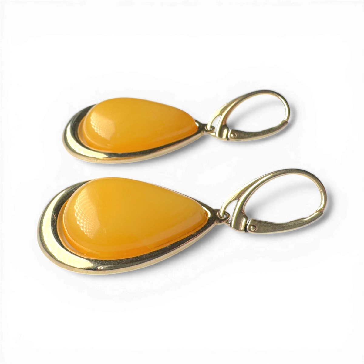 Gold-Plated Silver Earrings with Yellow Amber