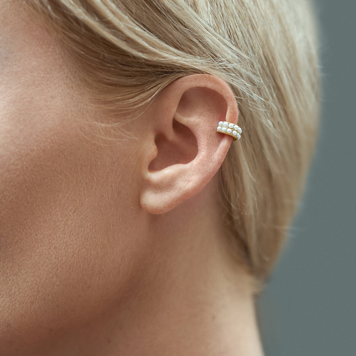 镀金银珍珠耳扣是一款时尚现代的配饰,为任何造型增添优雅气息。采用高品质纯银打造,表面覆以奢华的镀金工艺,这款耳扣饰有一颗美丽的珍珠,提升了其精致的设计感。独特的耳扣样式非常适合那些想要彰显个性但不需要穿耳洞的人士。无论是单独佩戴以展现极简风格,还是与其他耳饰搭配营造时尚叠戴效果,这款耳扣都是任何珠宝收藏的多功能补充,适合休闲和正式场合佩戴。