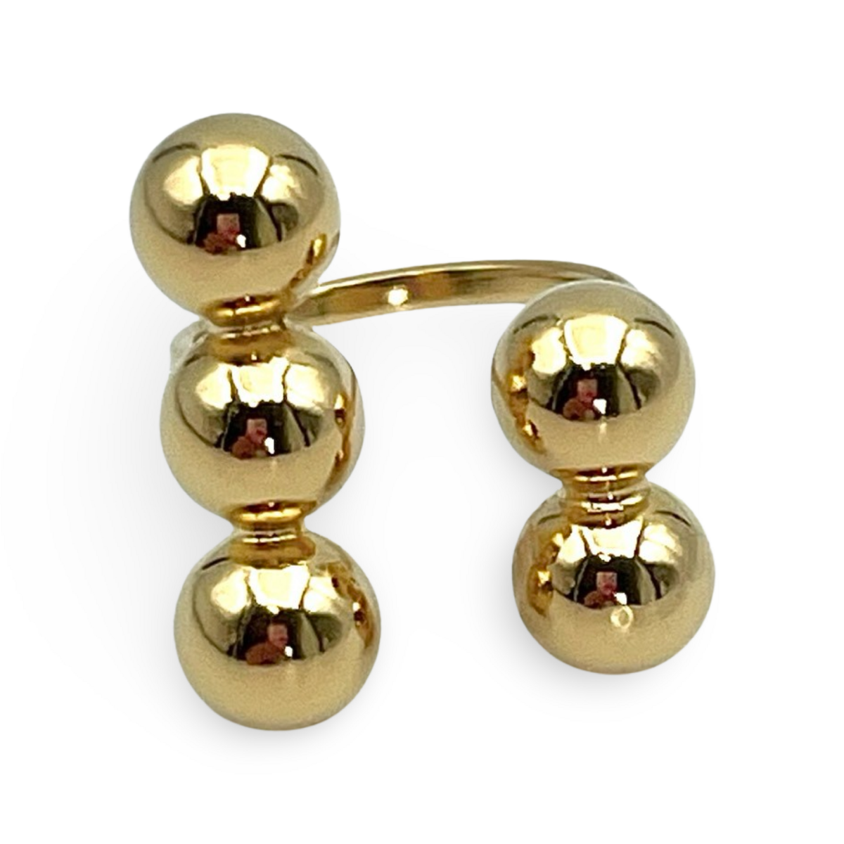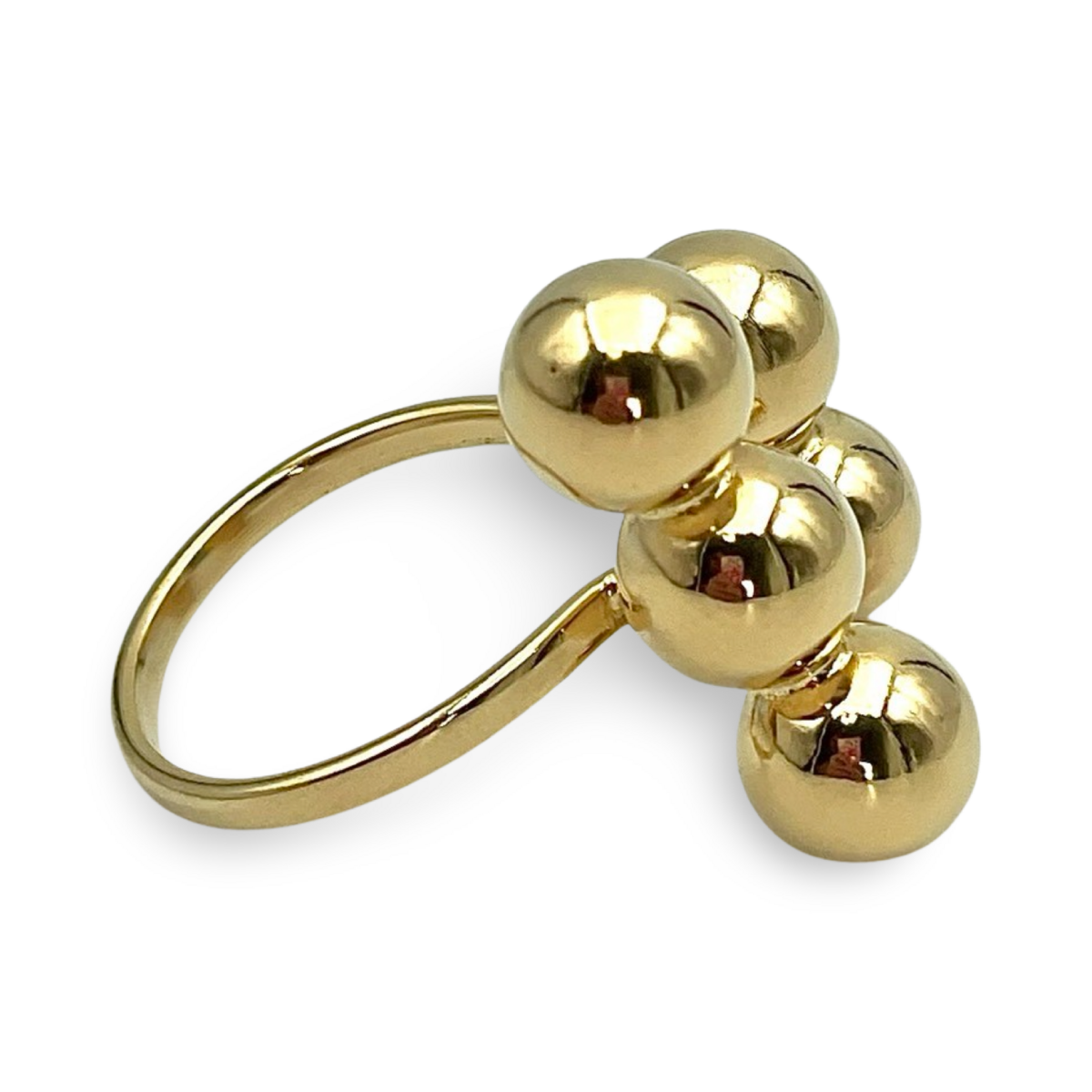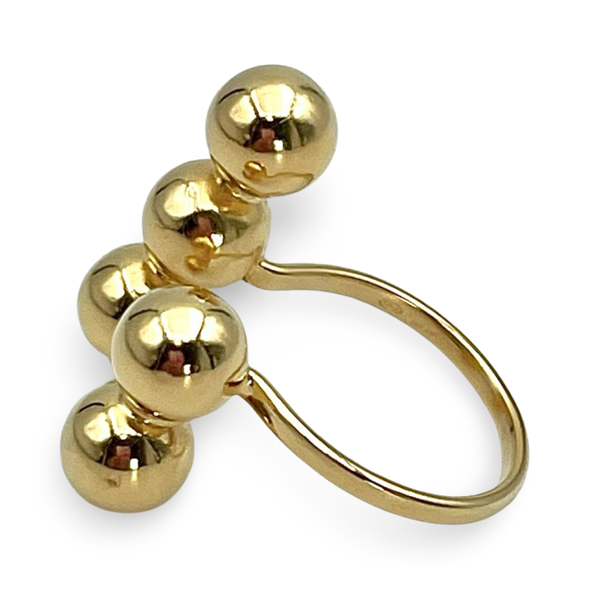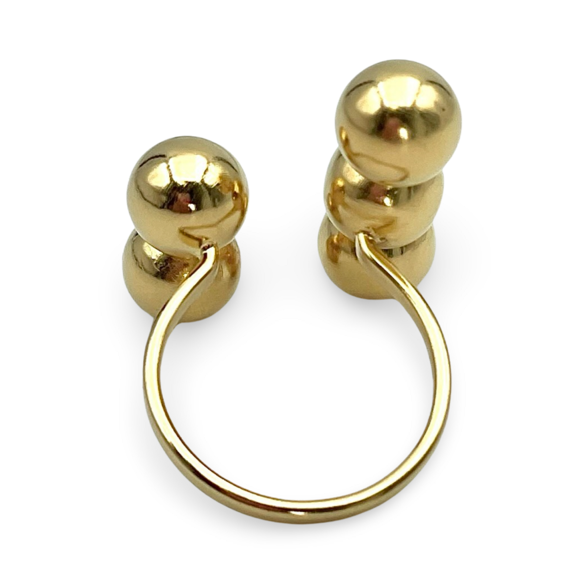镀金银质“球形”戒指是低调奢华的绝佳范例。其独特设计展示了抛光的镀金银球,排列成现代优雅的外观。可调节的均码设计使其成为适应不同手指尺寸的多功能选择,确保每个人都能兼顾舒适与风格。