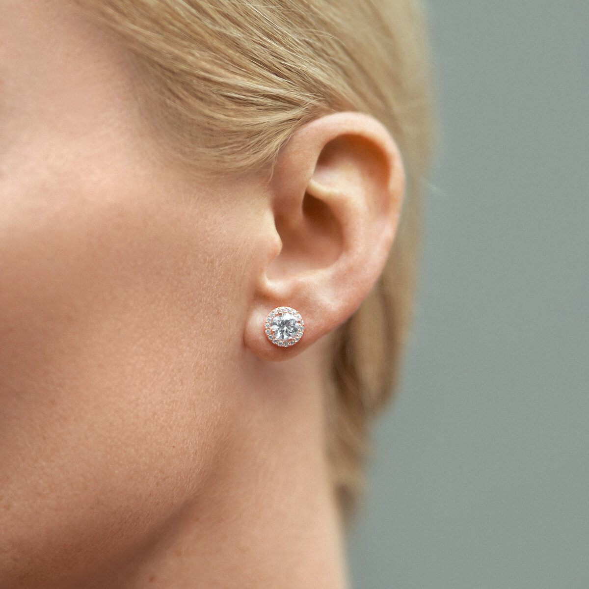 为您的珠宝收藏增添一抹优雅,这款令人惊艳的玫瑰金镀层925银圆形耳钉。每只耳环都采用光泽圆形设计,精致点缀着闪耀的白色锆石,从各个角度散发出光芒。玫瑰金镀层的温暖色调完美衬托出锆石的璀璨光辉,使这些耳环既适合休闲场合,也适合正式场合。它们经过舒适耐用的精心制作,是任何服装的理想配饰,为您的造型增添时尚且精致的魅力。