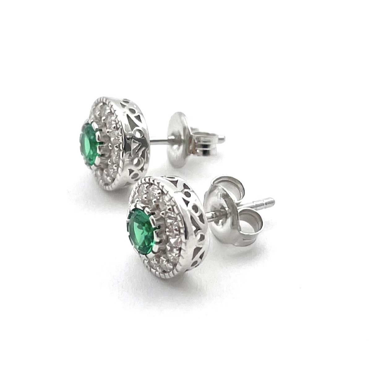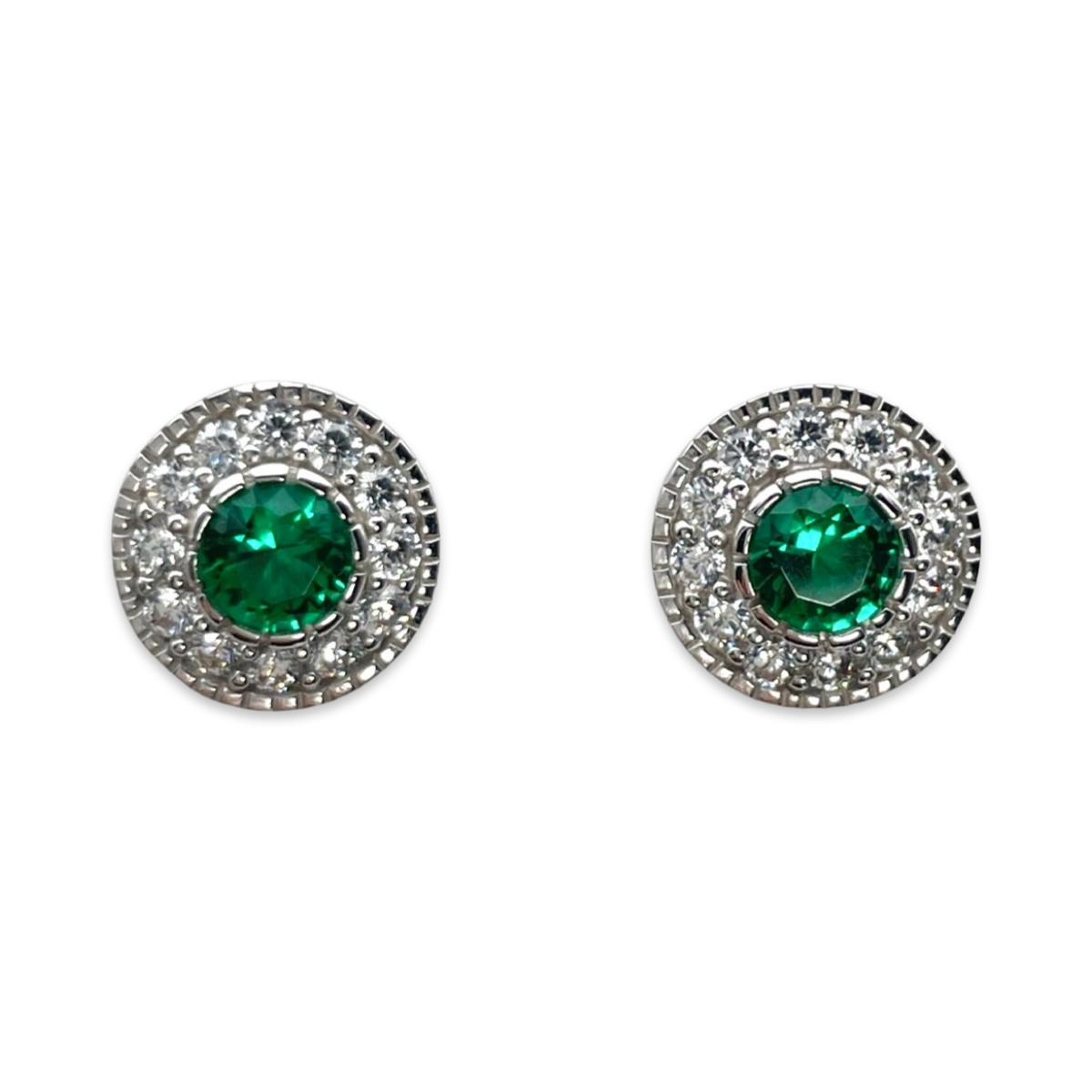 佩戴这款迷人的圆形耳钉,点缀着鲜艳的绿色锆石,提升您的优雅气质。这些耳环体现了精湛的工艺,必将成为您珠宝收藏中的珍贵之选。
