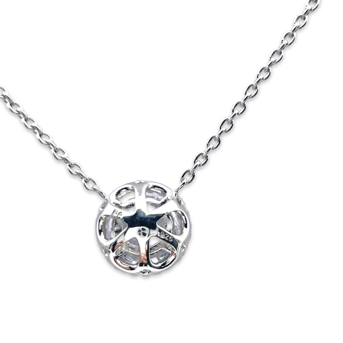 圆形银项链旨在提供真实钻石的光彩与优雅,同时避免高昂的费用。它结合了高品质的纯银链和镶有仿钻石的圆形吊坠,打造出一款精致且引人注目的配饰。