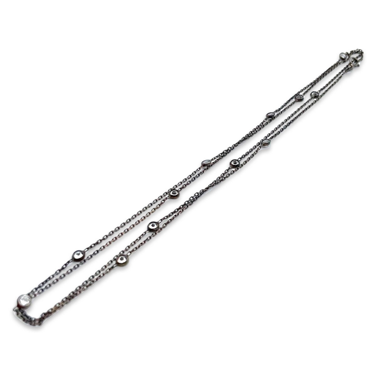 This silver chain is a beautiful piece of jewelry that features zircons, which are sparkling, colorless gemstones that are often used as a substitute for diamonds. The chain is made of high-quality silver 925, which is known for its durability and lustrous shine.The chain is designed to be both elegant and understated, making it a versatile accessory that can be worn with a variety of outfits. The zircons are carefully set into the chain, adding a subtle touch of sparkle and shine to the overall design.This silver chain is perfect for anyone who loves classic, timeless jewelry that can be worn for any occasion. It is sure to become a treasured addition to any jewelry collection.