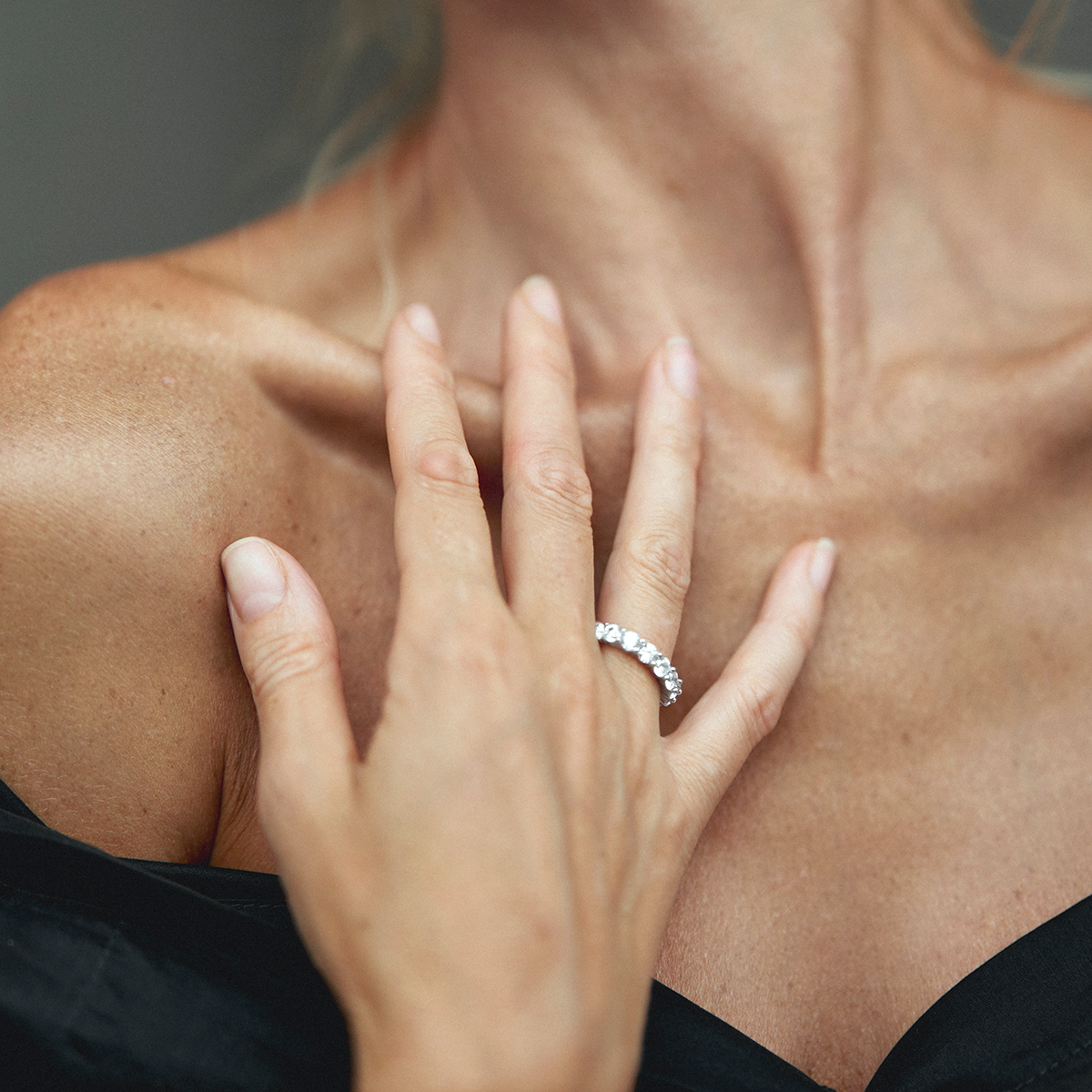 戒指采用精心设计的镶座,提升整体美感,并以永恒经典的方式展示仿钻石。设计在简约与精致之间取得完美平衡,适合各种场合佩戴。
