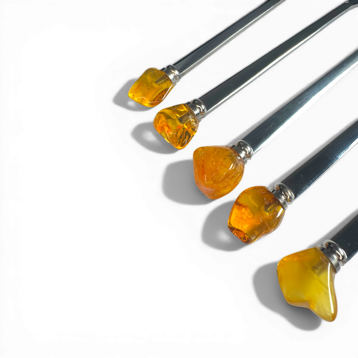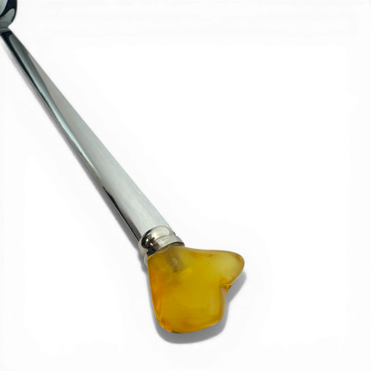 Stainless Steel Spoon with AmberThe Vibe: Transform your morning ritual into a sensory experience. The cool steel meets a glowing amber handle, making every stir a moment of mindfulness.Style Tip: The perfect companion for your favorite artisan coffee or a slow Sunday breakfast. It’s a small luxury that makes the start of your day feel golden.