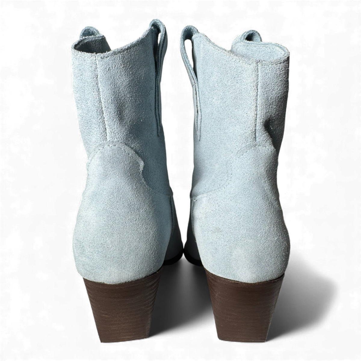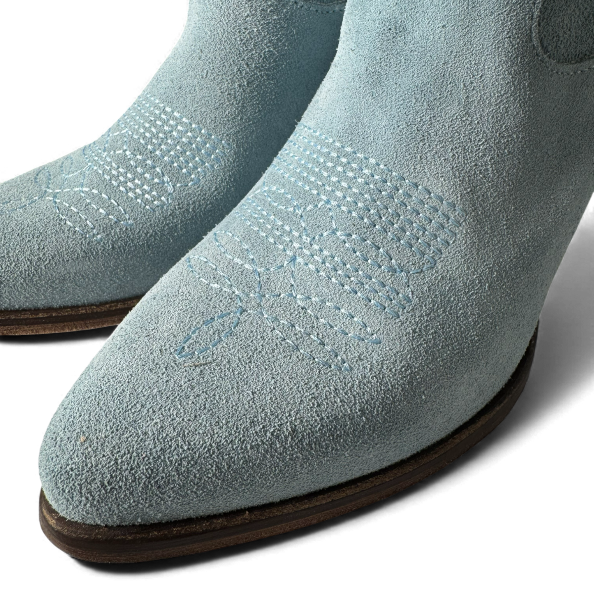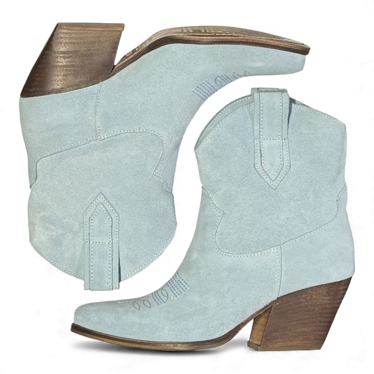 Hergestellt aus weichem himmelblauem Wildleder, verbinden die Leila-Stiefel klassische Westernlinien mit einem modernen Biker-Charme. Mit einer schlanken Silhouette, spitzer Zehenpartie und bequemem Blockabsatz bieten sie mühelosen Stil und Vielseitigkeit. Elegant, langlebig und mühelos schick – die perfekten Statement-Stiefel für jede Garderobe.