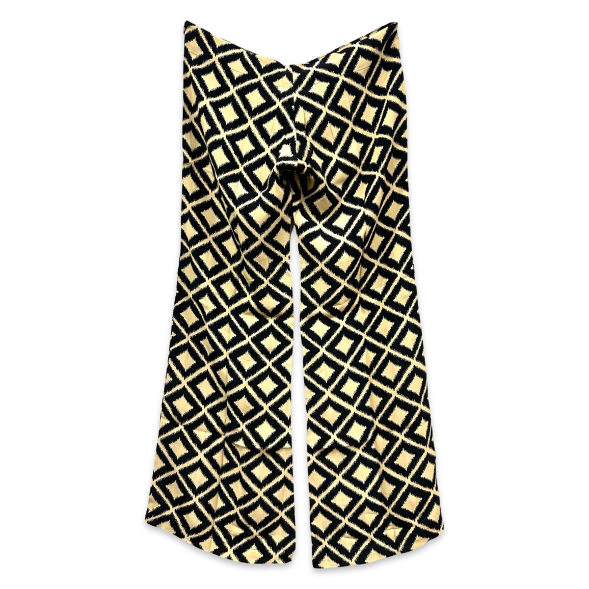 Diese Hosen haben ein einzigartiges Design mit einem breiten Bund, der durch ein elastisches Band gesichert wird.