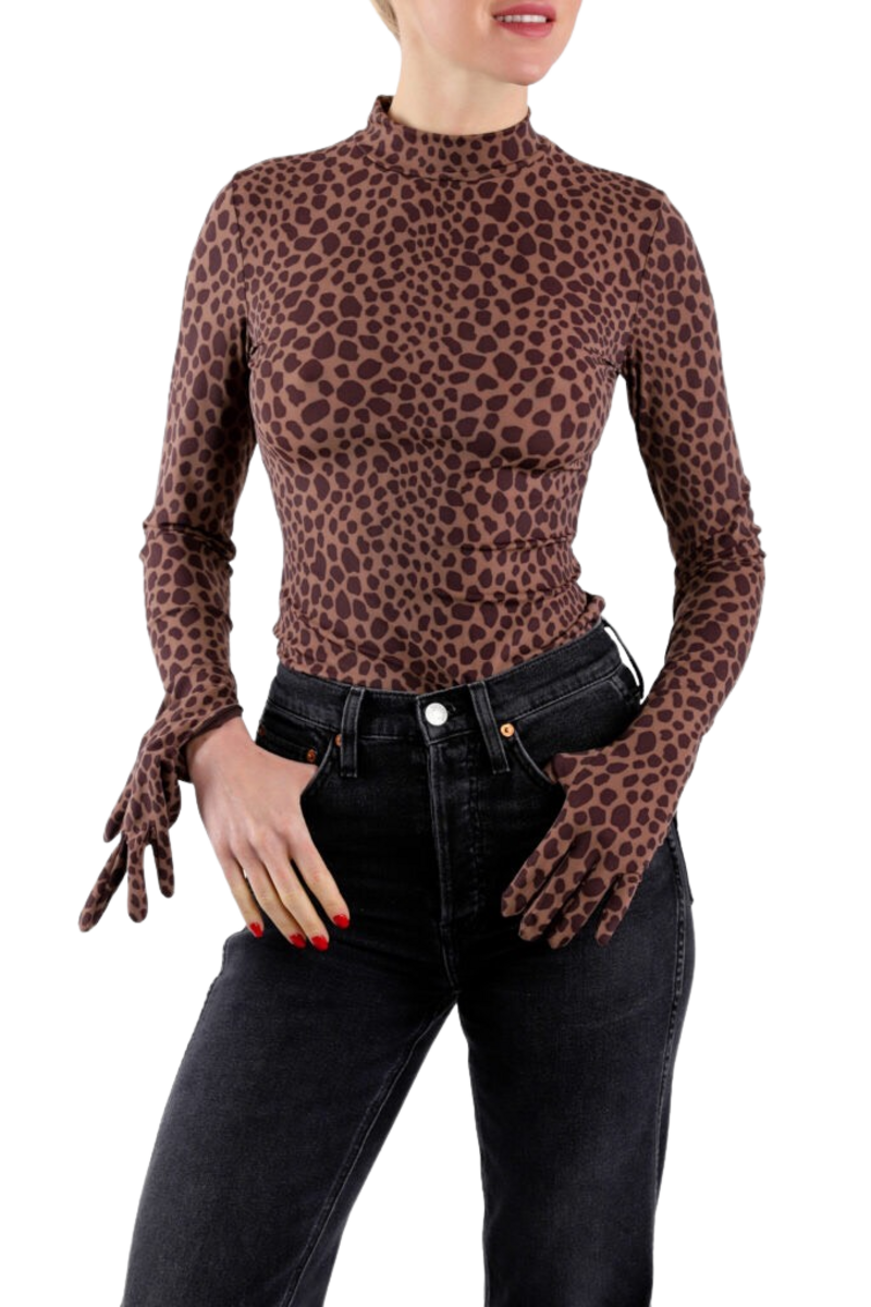 This top with a gloves is a unique and trendy piece that is sure to make a statement. It features a sleeve design with long gloves on one arms, giving it a chic and edgy look. The top is made from a soft and comfortable fabric that drapes beautifully and flatters the figure.