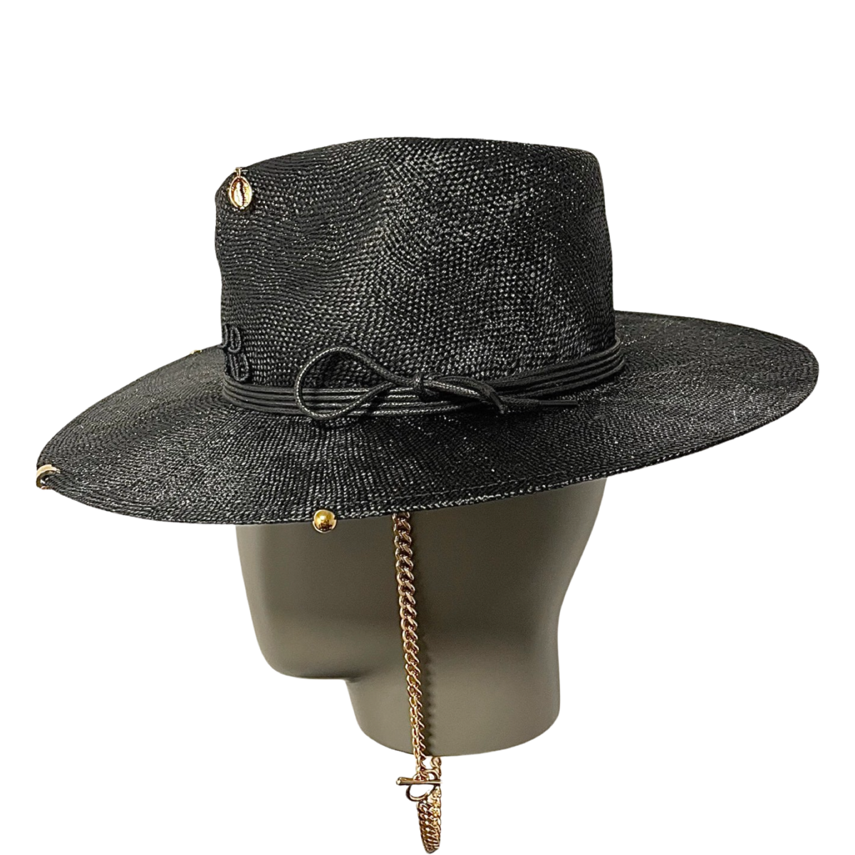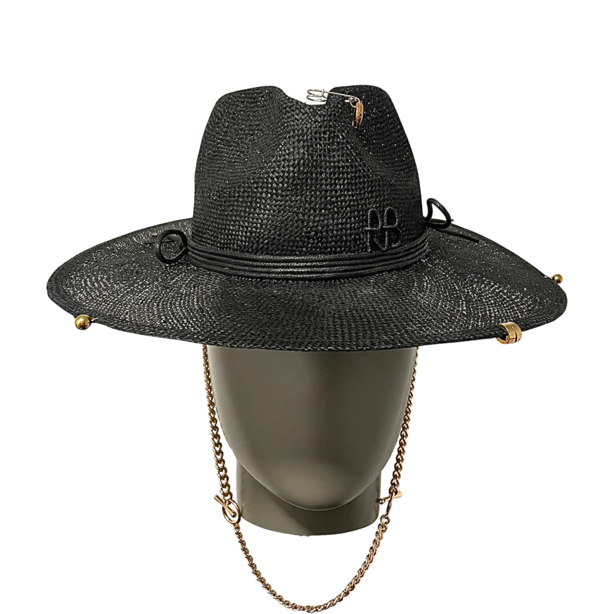 Der Chain Strap Black Strohhut Fedora von Ruslan Baginskiy ist ein raffiniertes und kantiges Accessoire, das jedes Outfit mühelos aufwertet. Hergestellt aus hochwertigem schwarzem Stroh, verfügt dieser Fedora über eine strukturierte Krone und eine mittlere Krempe, die eine zeitgemäße Interpretation einer klassischen Silhouette bieten. Das markante goldfarbene Kettenband-Detail fügt ein mutiges, modernes Element hinzu und sorgt für einen einzigartigen Kontrast zum eleganten schwarzen Stroh. Perfekt, um ein Statement zu setzen, verbindet dieser Hut zeitlose Eleganz mit dem charakteristischen avantgardistischen Stil von Ruslan Baginskiy und ist somit die ideale Wahl für alle, die modische und luxuriöse Kopfbedeckungen schätzen.