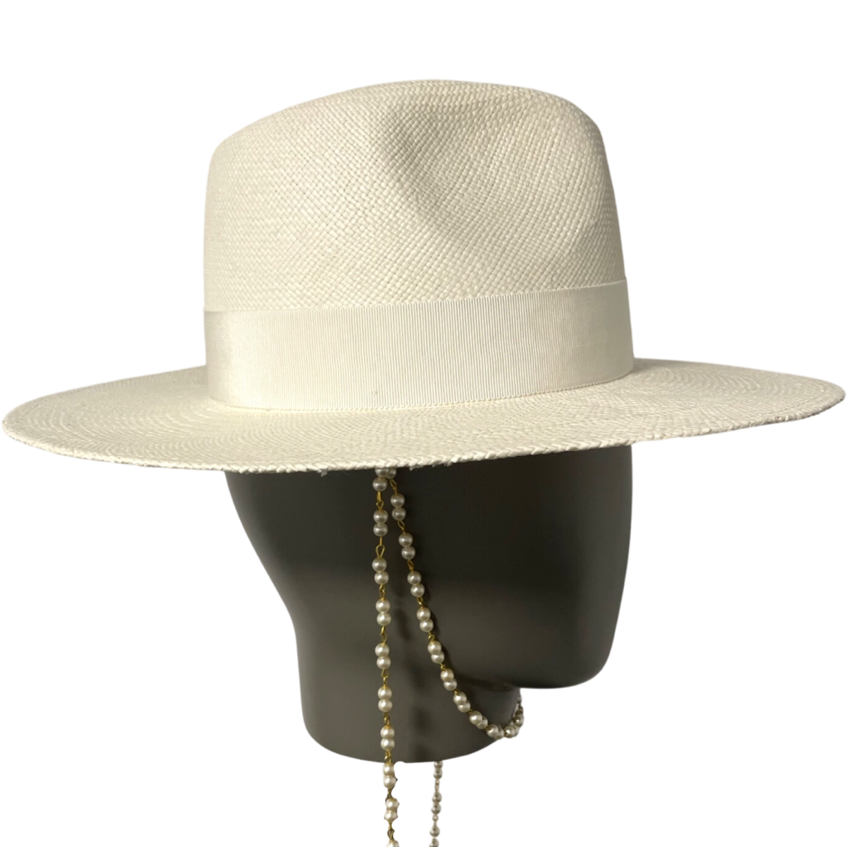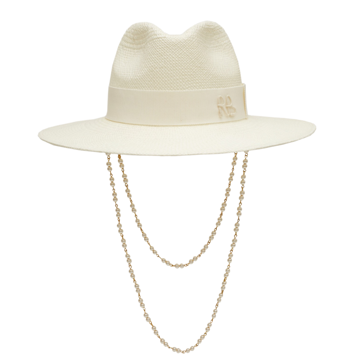 The Double Chain Strap Fedora Hat by Ruslan Baginskiy is a chic and stylish accessory that is perfect for anyone looking to add a touch of sophistication to their outfit. This hat features a classic fedora design, elevated by the addition of double chain straps that add a touch of edgy glamour to the overall look.Crafted from high-quality material, this hat is both comfortable and durable. The hat is designed for a comfortable fit, with an adjustable strap that can be adjusted to fit most head sizes. The natural color of the hat adds a classic and versatile touch, making it the perfect accessory to wear with a variety of outfits.The double chain straps on this hat add a unique and eye-catching element to the design. The gold-tone chains are attached to the sides of the hat and feature a simple yet elegant design that perfectly complements the classic fedora style. The chains also add a touch of edgy glamour to the overall look of the hat, making it perfect for adding a touch of personality and individuality
