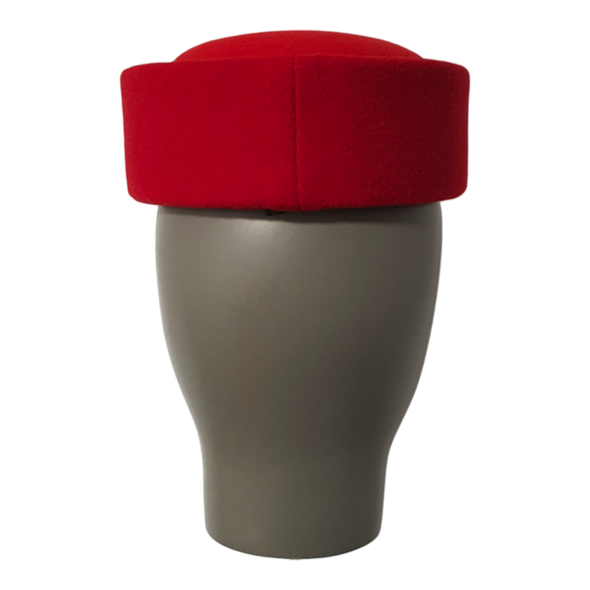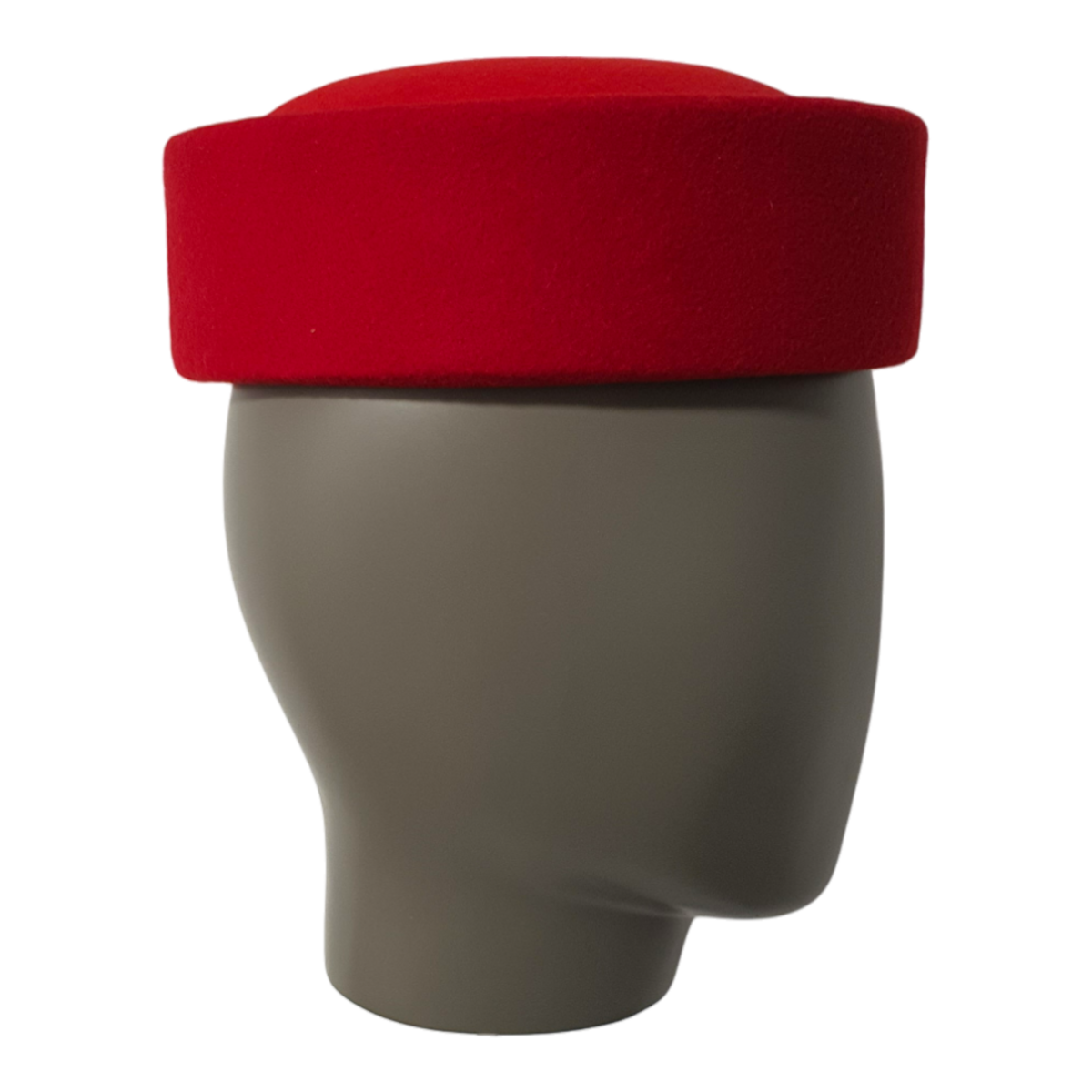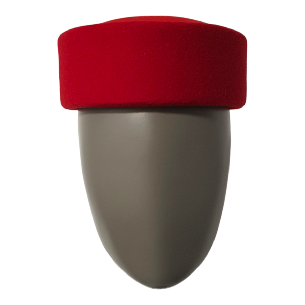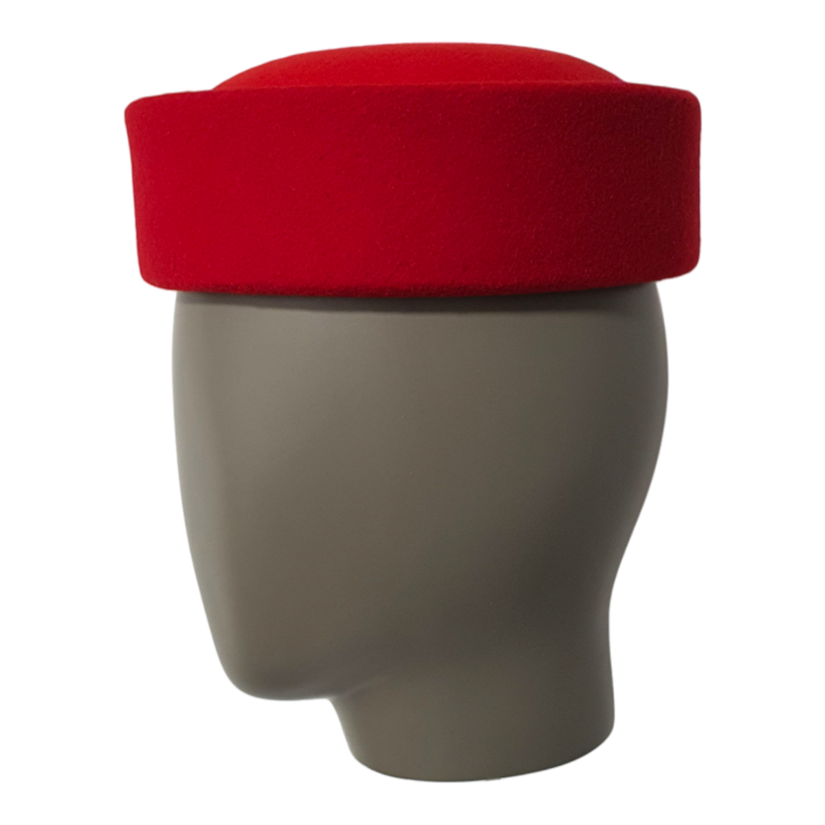 Der Jackie Cherry Pillbox Hut ist ein kühner und eleganter roter Pillbox-Hut aus luxuriöser Merinowolle und Samt. Mit seinem klassischen umgeschlagenen Rand und der zeitlosen Silhouette verleiht dieses Unisex-Stück jedem Outfit einen Hauch von vintage Raffinesse.