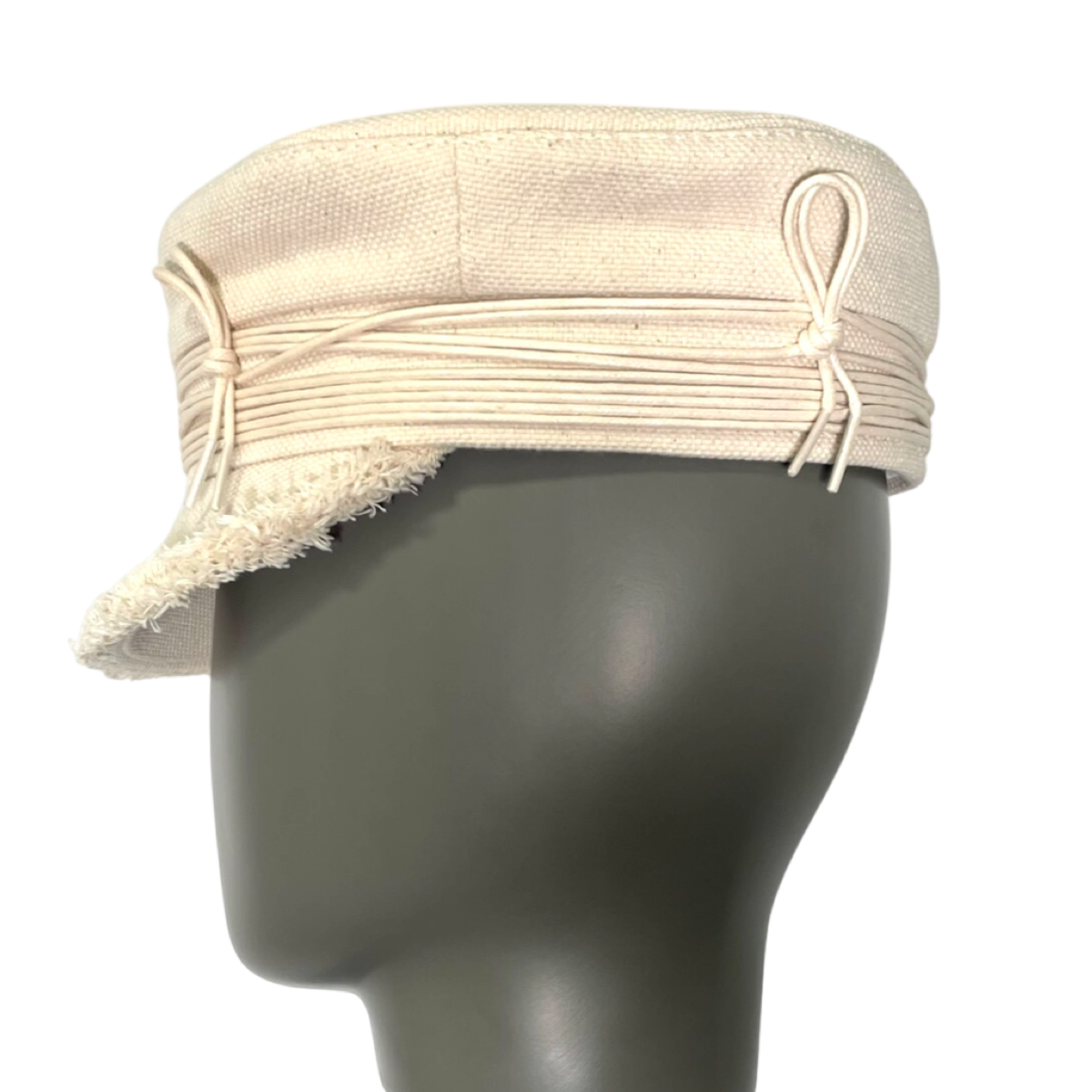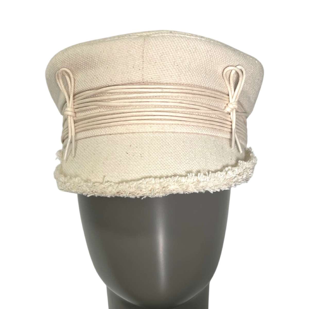 The Lace-tied Baker Boy Cap is a stylish and elegant accessory that will add a touch of sophistication to any outfit. This cap is made from high-quality materials and features a classic baker boy design with a modern twist.The cap is crafted from soft and breathable fabric, making it comfortable to wear for extended periods of time. The lace-up detailing on the front of the cap adds a unique and eye-catching touch, while also allowing for a customizable fit.This Lace-tied Baker Boy Cap is available in a beautiful natural beige color, making it a versatile accessory that can be paired with a variety of different outfits. Whether you're dressing up for a special occasion or simply looking to add some flair to your everyday style, this cap is the perfect choice.