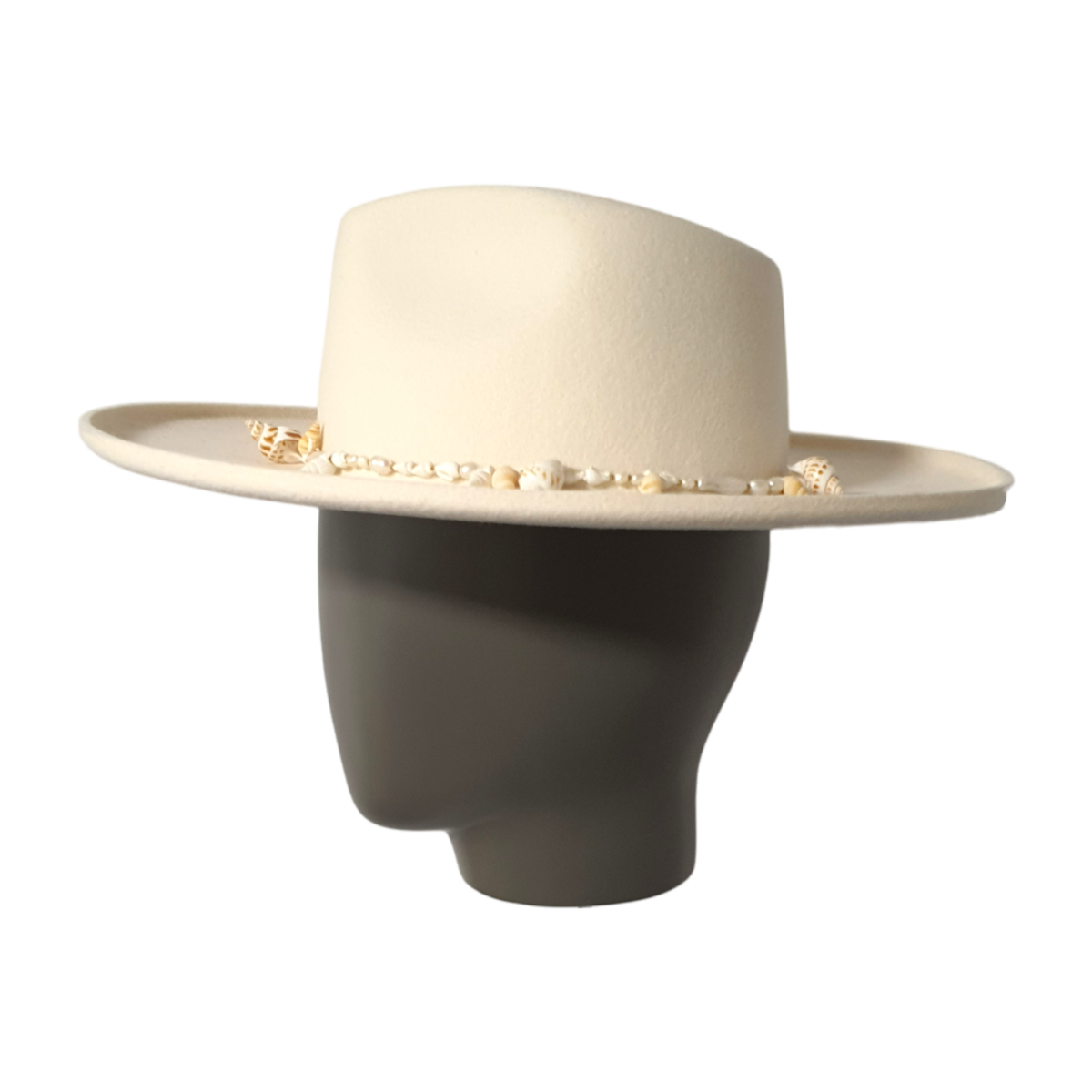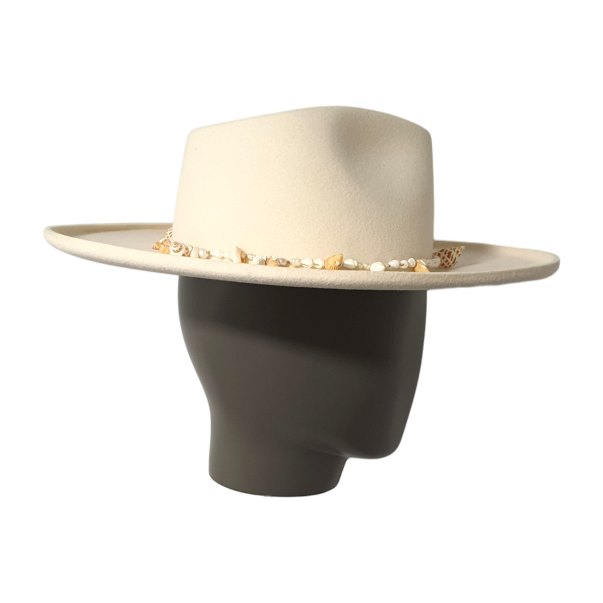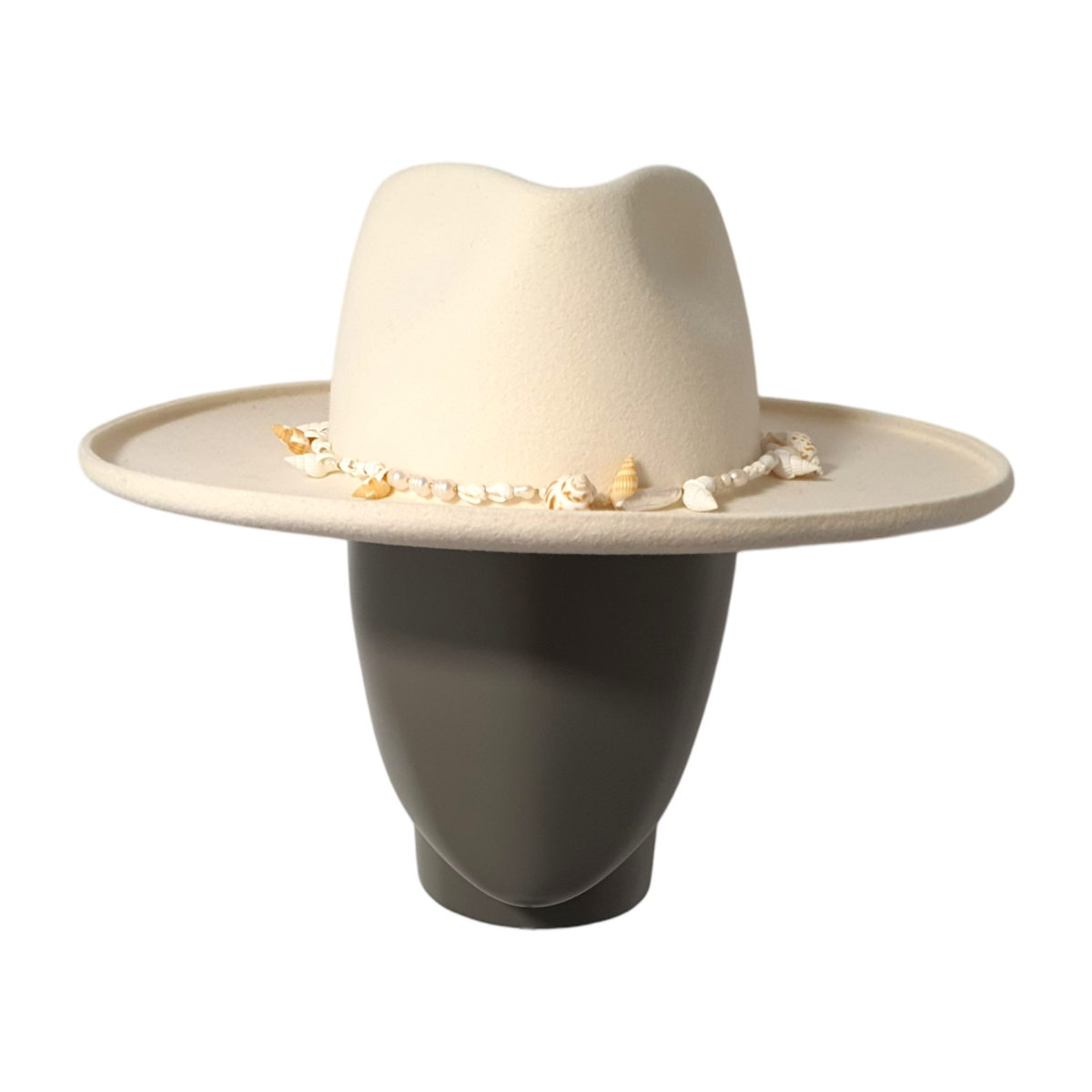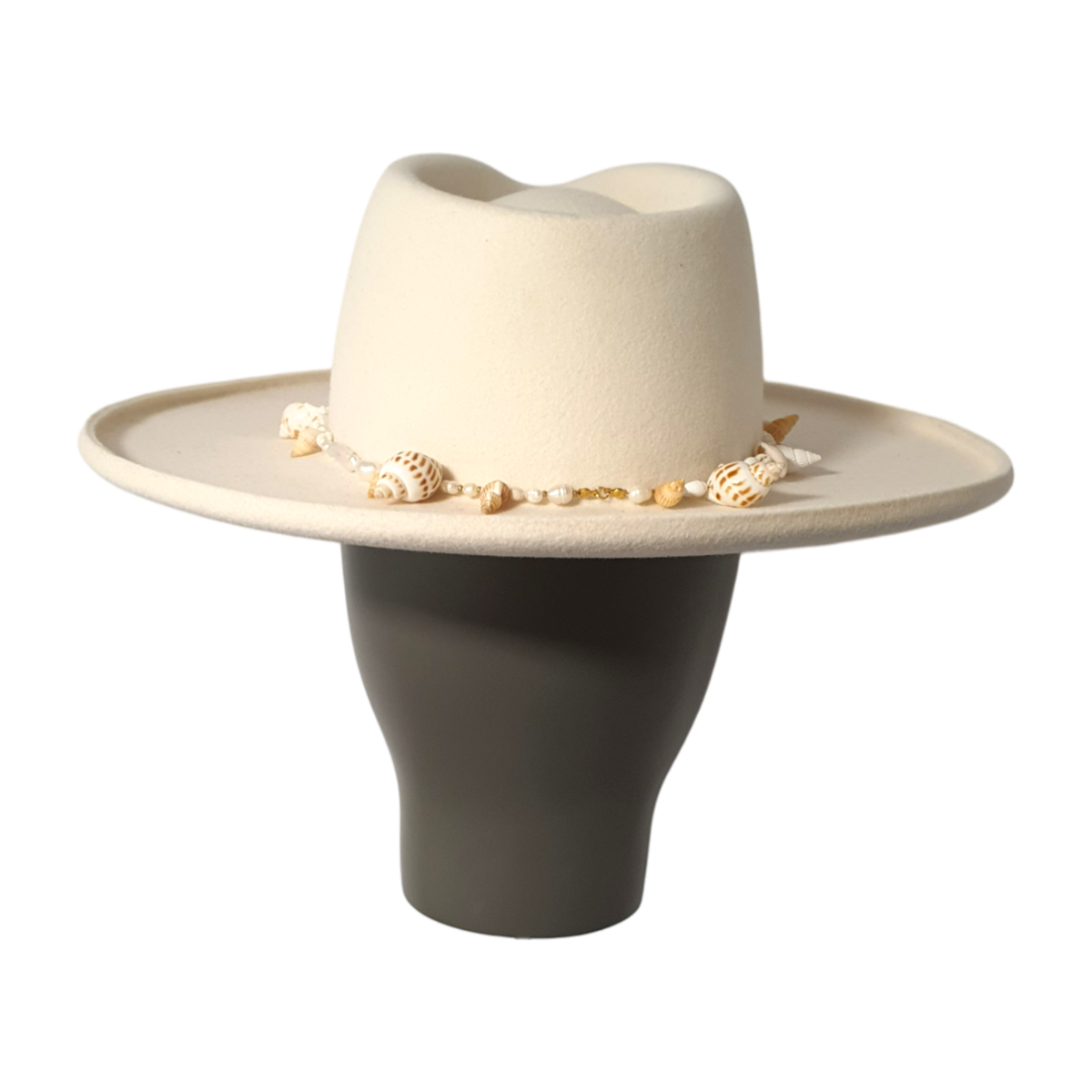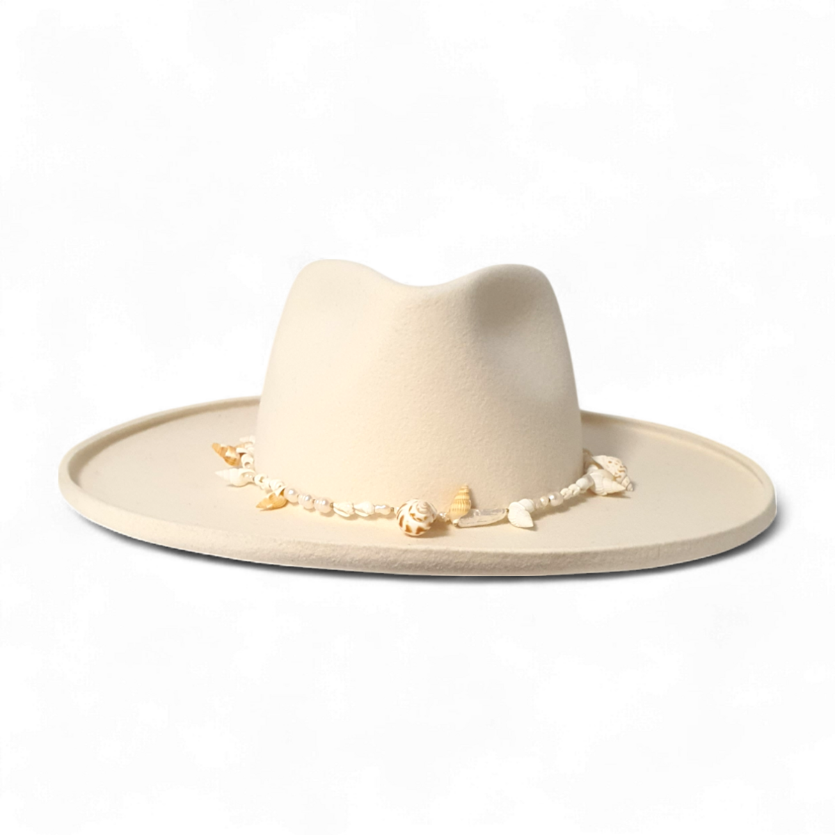 Was diese Sonderedition auszeichnet, ist der 1 cm umgeschlagene Rand, ein markantes Detail, das einen modernen, modischen Akzent setzt. Der Hut ist mit einer Muschelkette verziert, die seine sommerliche, küstennahe Ausstrahlung verstärkt und ihn zu einem echten Hingucker in jeder Garderobe macht.