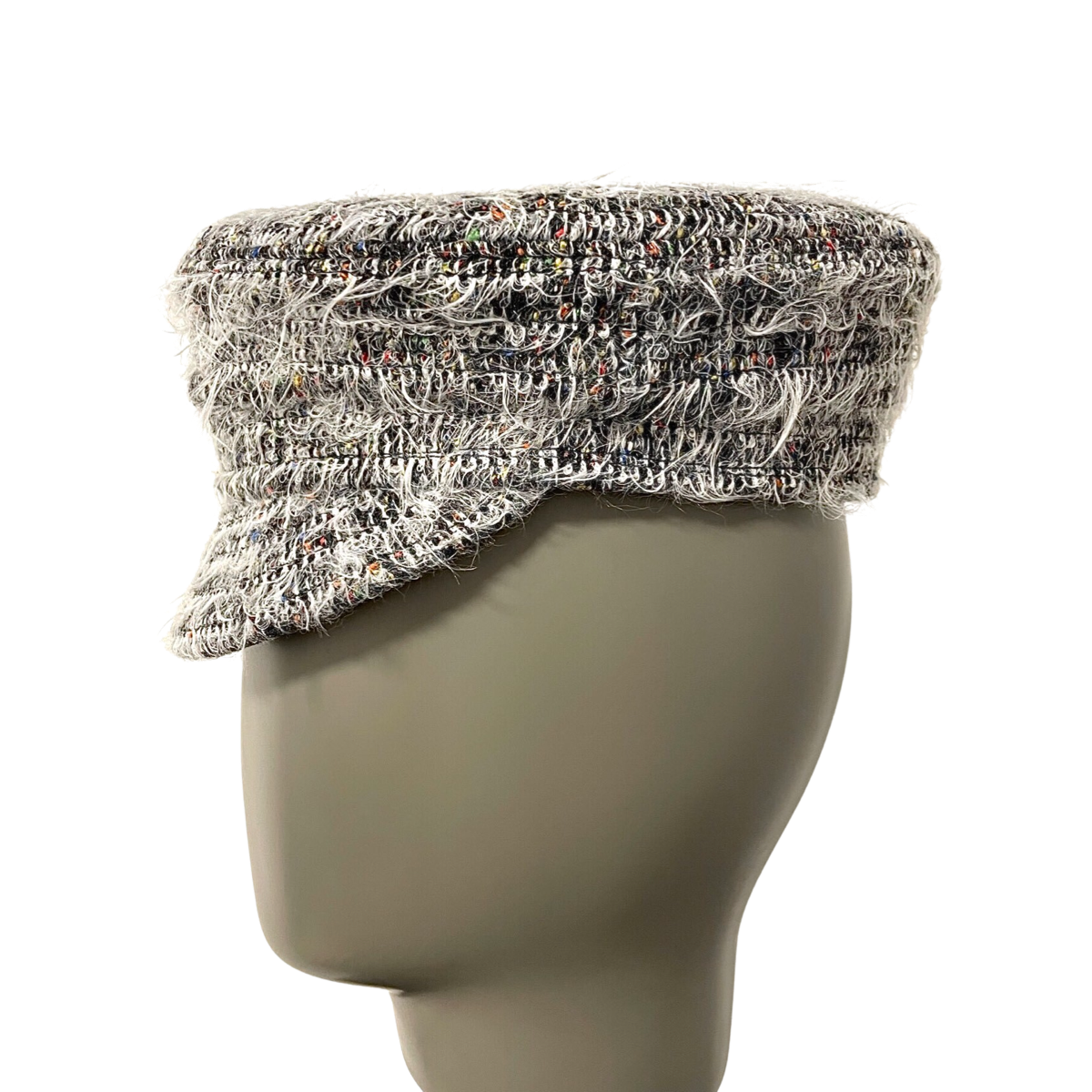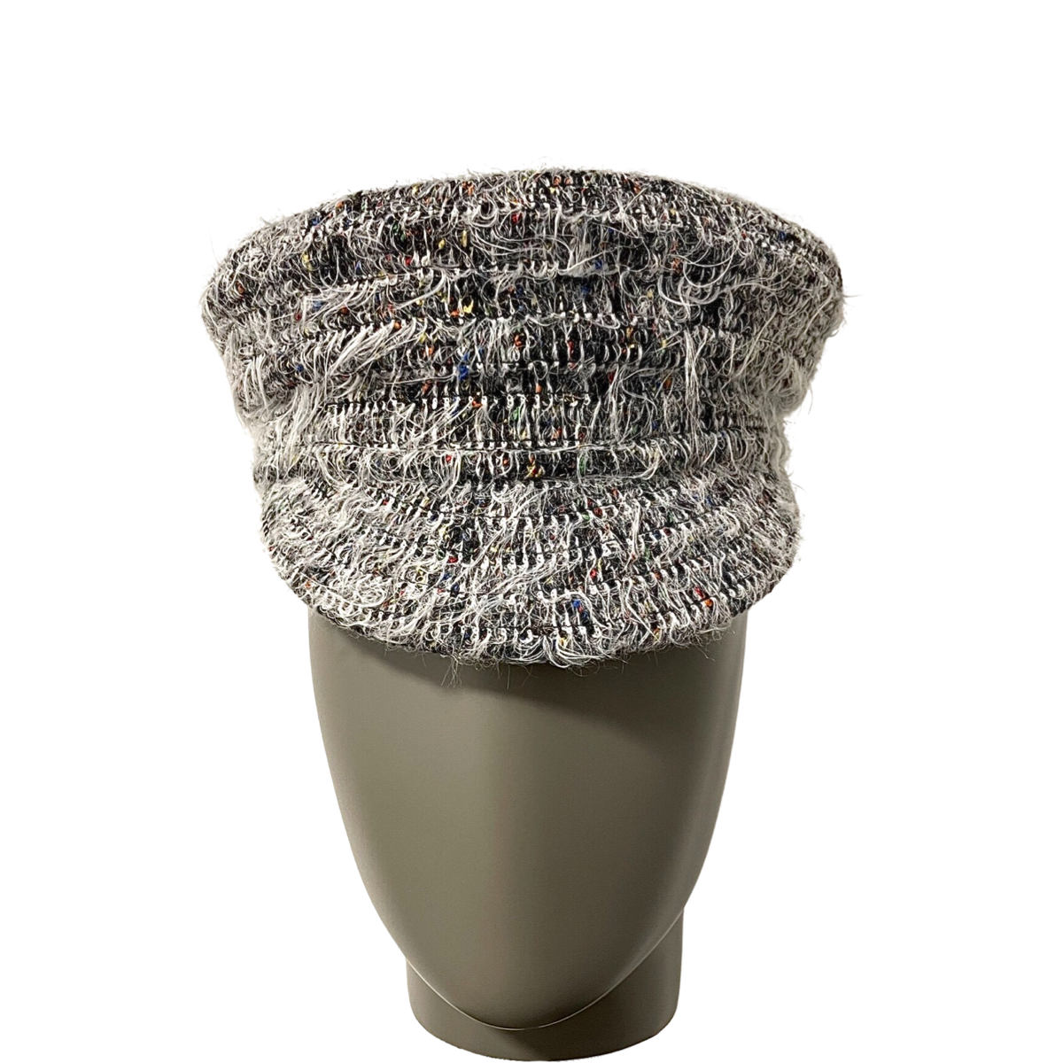 Mit der klassischen Baker Boy-Silhouette mit strukturiertem Schirm und Krone strahlt diese Mütze zeitlosen Charme aus und integriert gleichzeitig zeitgenössische Elemente. Die shaggy Textur verleiht der Mütze einen Hauch von Flair und Persönlichkeit, wodurch sie sich von traditionellen Designs abhebt.